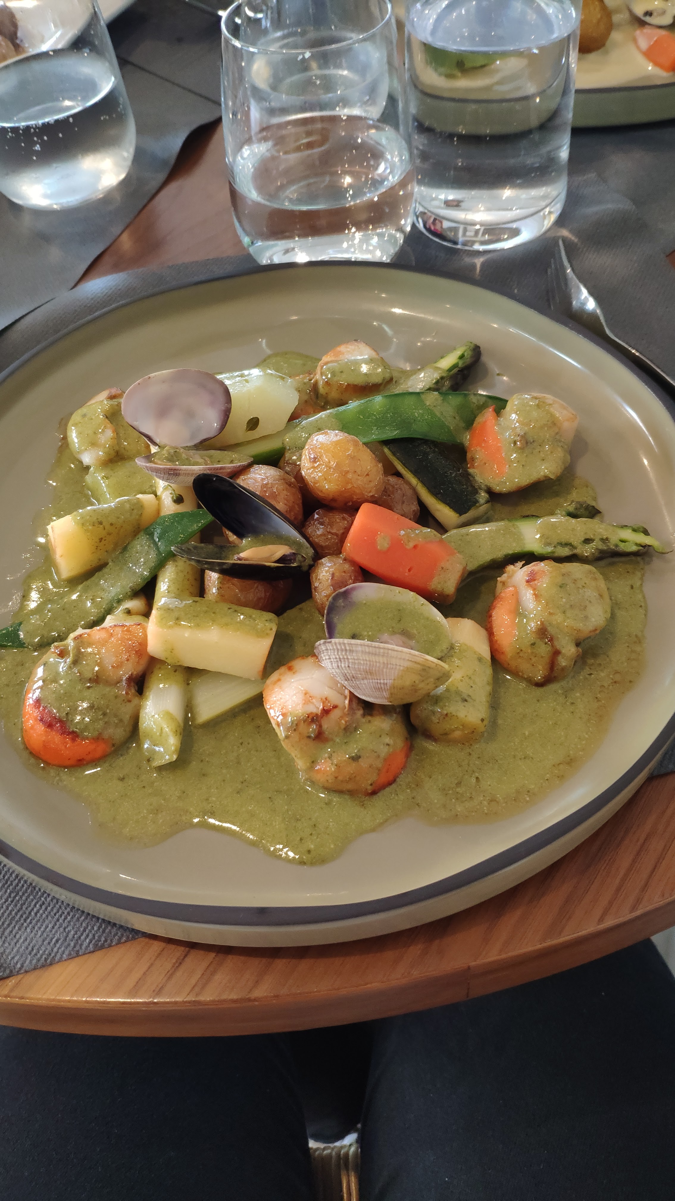 Je conseille vraiment ce restaurant Très bon plat de poisson et de crustacés Sauce originale Plats salés excellent Je suis plus réservée pour le dessert
