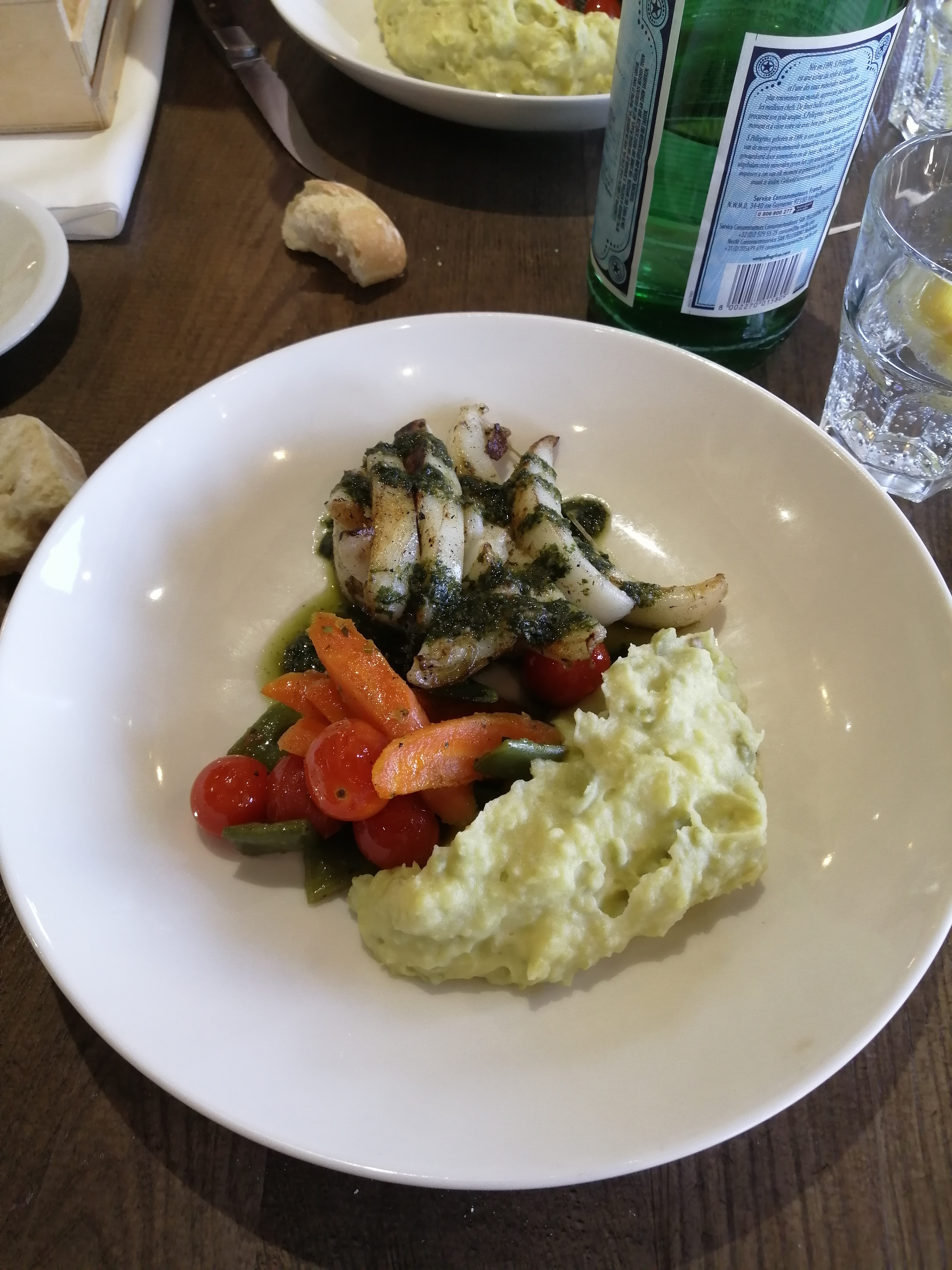J'ai pris le poulpe avec une purée de légumes. Le mien était bien grillé mais il manquait carrément de cuisson dans l'assiette voisine (gélatineux). Desserts décevants. Accueil sympathique.