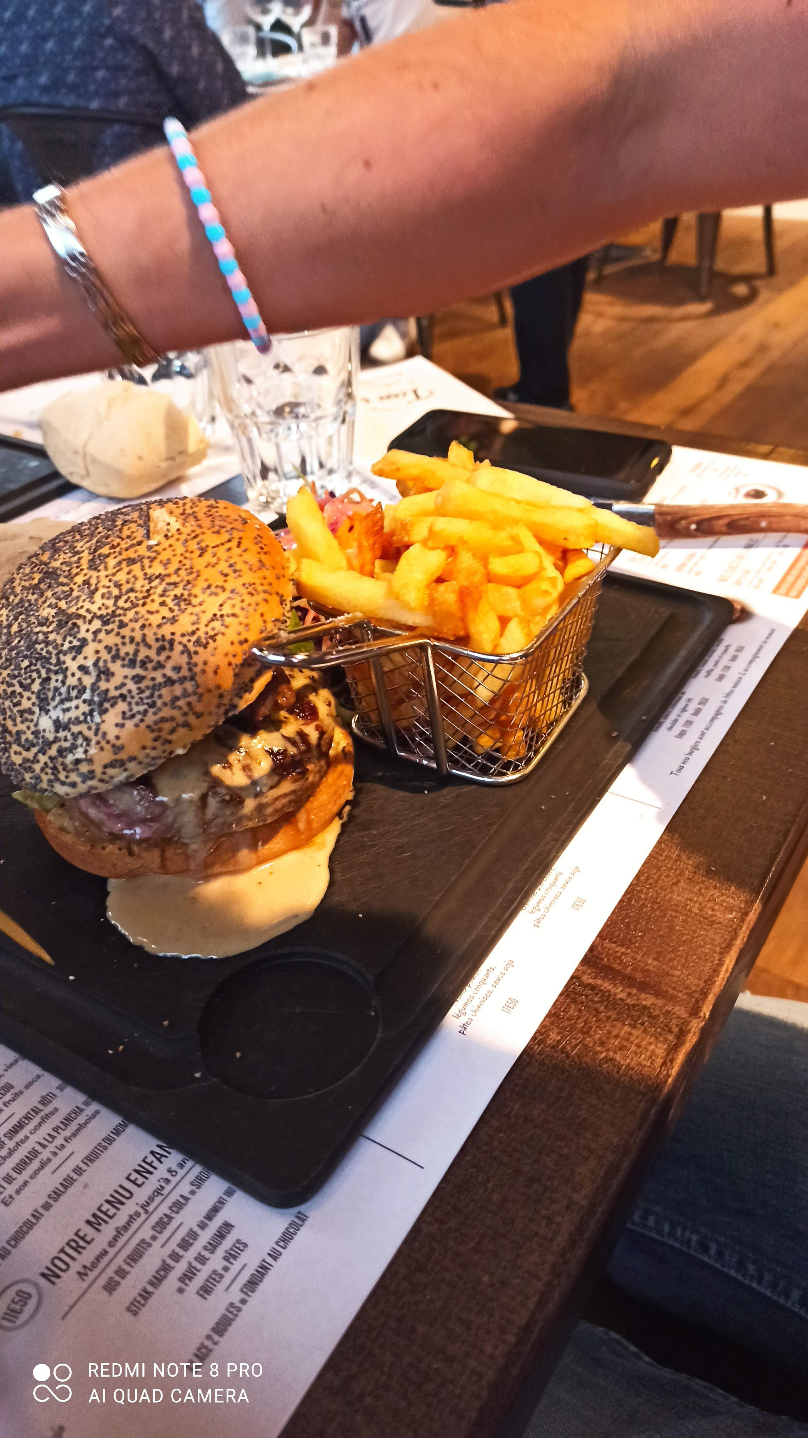Très déçu. Je ne connaissais pas mais je m'attendais à autre chose. Je commande un hamburger qui arrive brûlé, je goûte quand même mais impossible de le manger le pain en bouche faisait de la poudre tellement il était brûlé et le steack caoutchoucteux donc j'ai demandé à ce qu'il soit refait. S'était mieux. Le service aussi est à revoir au début servi par un jeune homme correcte pour ensuite changer pour une jeune fille peu aimable. Aucune question pour savoir si le repas s'était bien passé, passe près de notre table récupére un des verres vide en coup de vent sans demander si on avait fini ou si on désiré un autre verre,aucune proposition de la carte des desserts, vraiment service froid. C'est son collègue en voyant qu'on attendait depuis un moment qui est venu nous proposer la carte mais on était déjà déçu donc on a préféré payer et partir. Et même en caisse même pas un petit mot sympa pour savoir si le repas s'était bien passé.😒