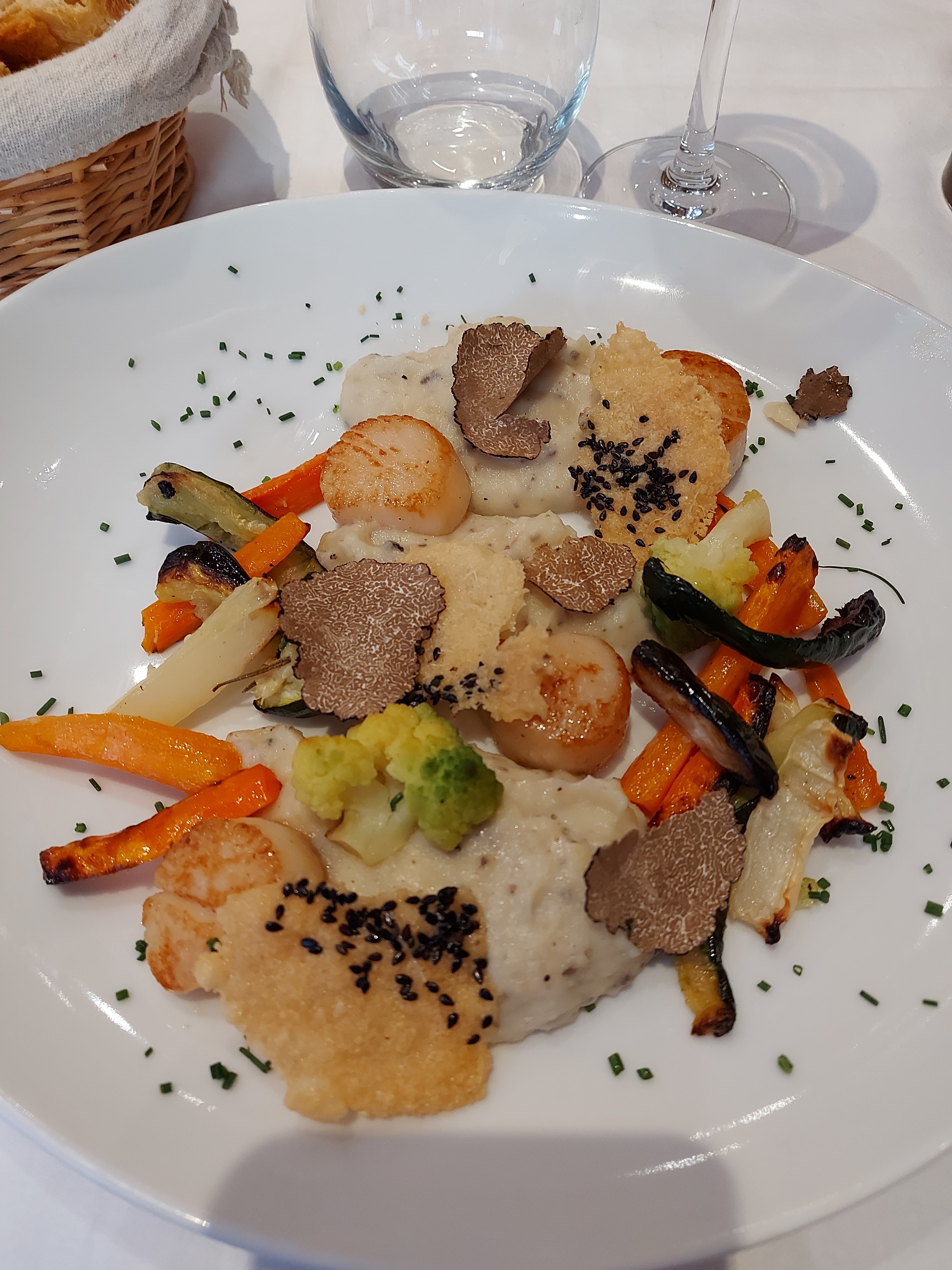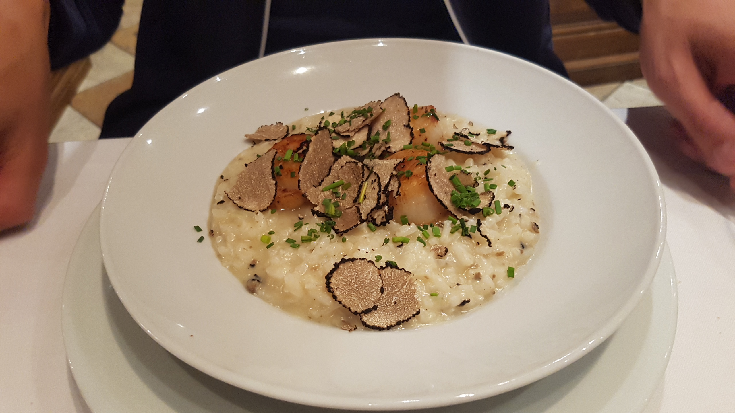 Diner à trois : un risotto à la truffe, une salade à la truffe pour la vegan du groupe, St Jacques poêlées au risotto à la truffe. Unanimité des 3 convives sur le fait que les truffes d'été qui entrent dans la composition des 3 plats en question n'ont quasiment aucun goût (si, si...); c'est pourtant la raison majeure de venir là, car sinon, 27€ pour un risotto, c'est cher...Service moyen , cadre agréable, mais rapport qualité prix faible du fait de la faiblesse du goût des truffes.