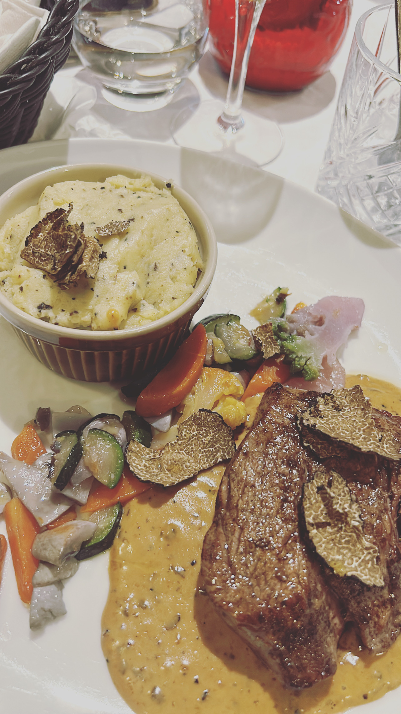 Oh mon Dieu, le filet de bœuf aux truffes et la crème brûlée aux truffes étaient foodgasmic ! Viens juste pour ça. Le bœuf doit être moyennement saignant. Niveau de richesse juste parfait. Serveur très charmant