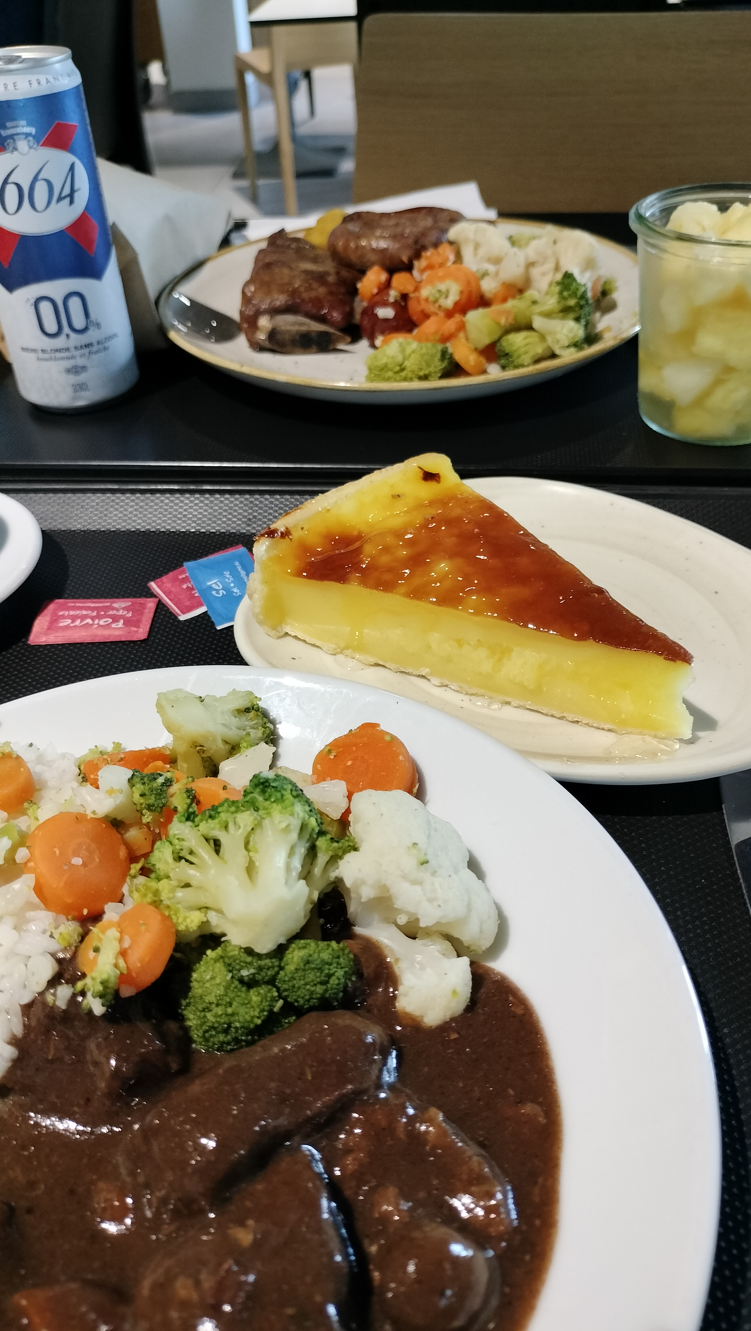 Vendredi 20h 45 choix entre escalope ( 3 ) et poisson ( 4 ) une part de gratin et le reste du riz pour les gens derrière nous plus rien à 21 h restaurant d’autoroute ? Non distributeur de ( ce qui me reste ) pour le prix 24€ une assiette et une boisson … donc 😩
