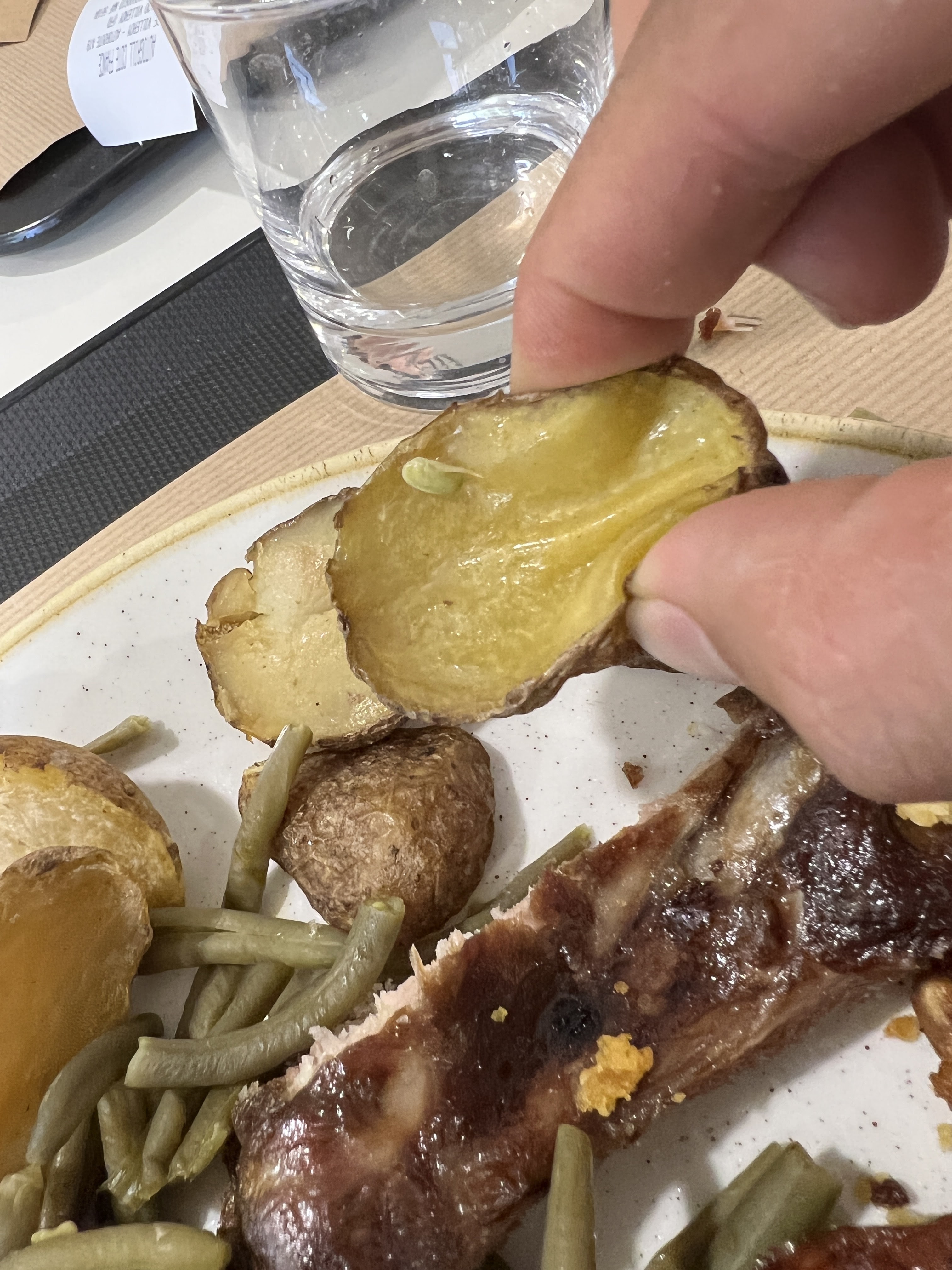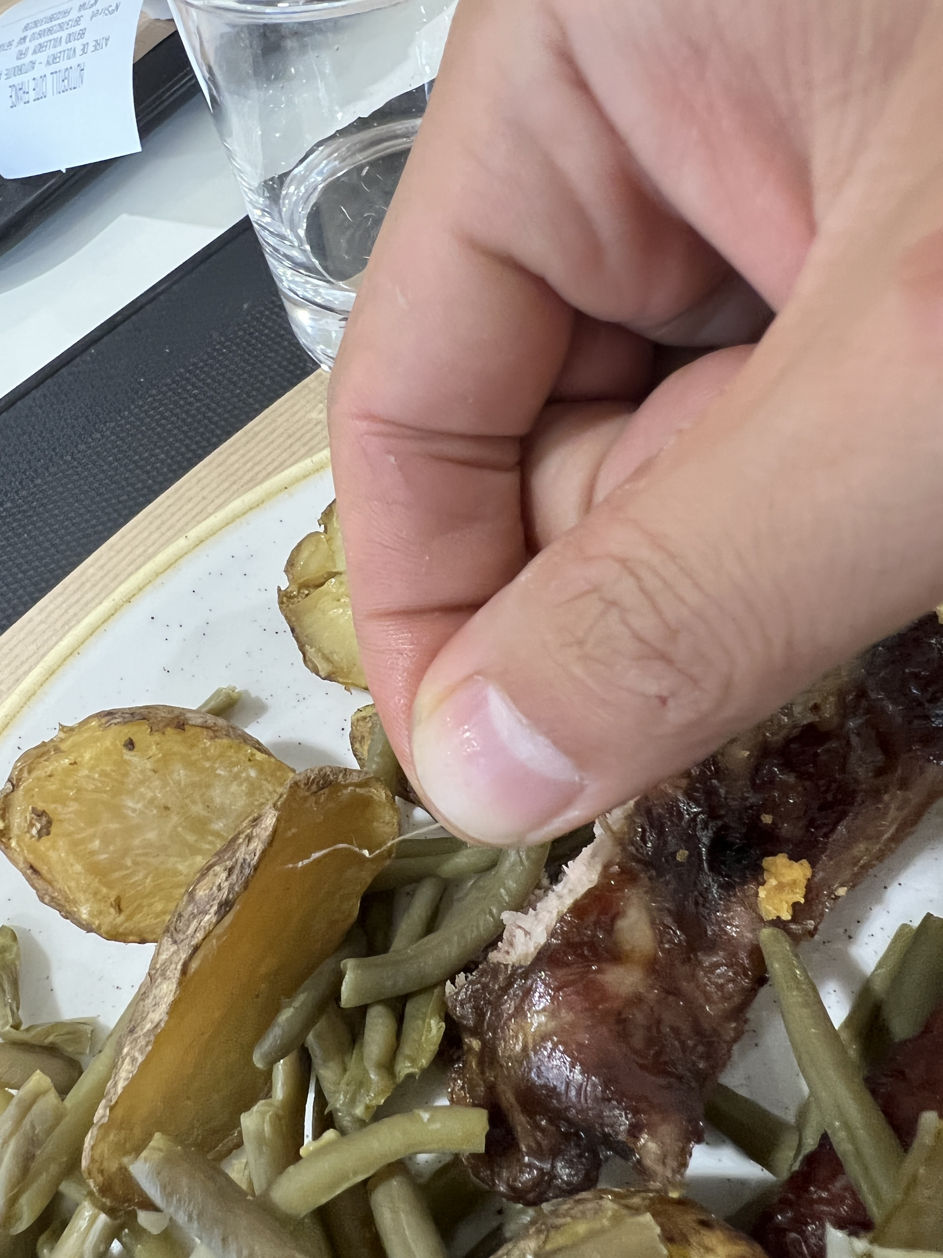 Cher pour un repas qui n'en valait pas le coup ! Poulet sec et bien trop cuit, pommes de terre trop cuites, grasses et cramées...