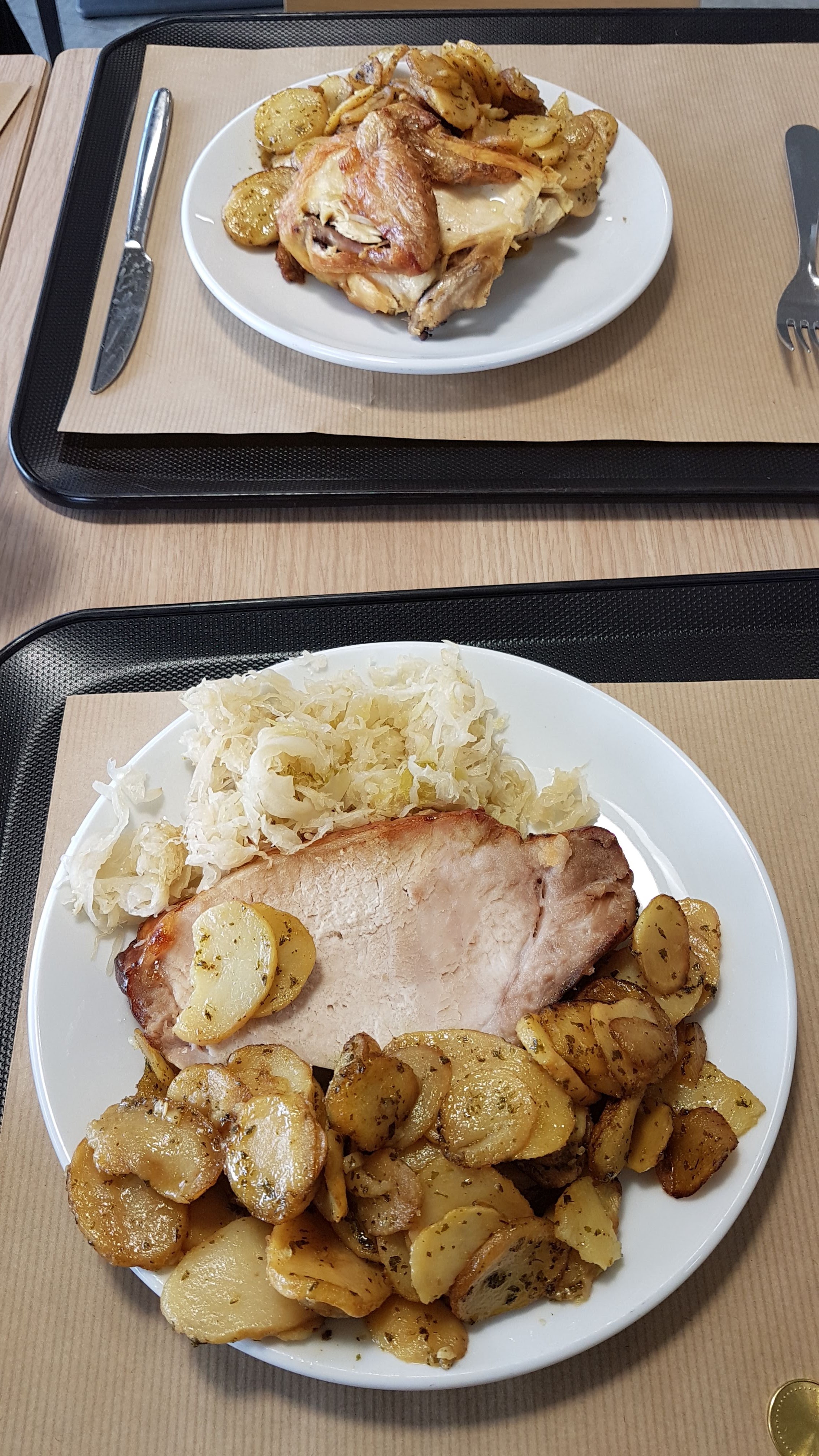 Arrivé à 13h15 il n'y avait plus de choix, à par une assiette de charcuterie en entrée et une saucisse en plat. Vraiment minable