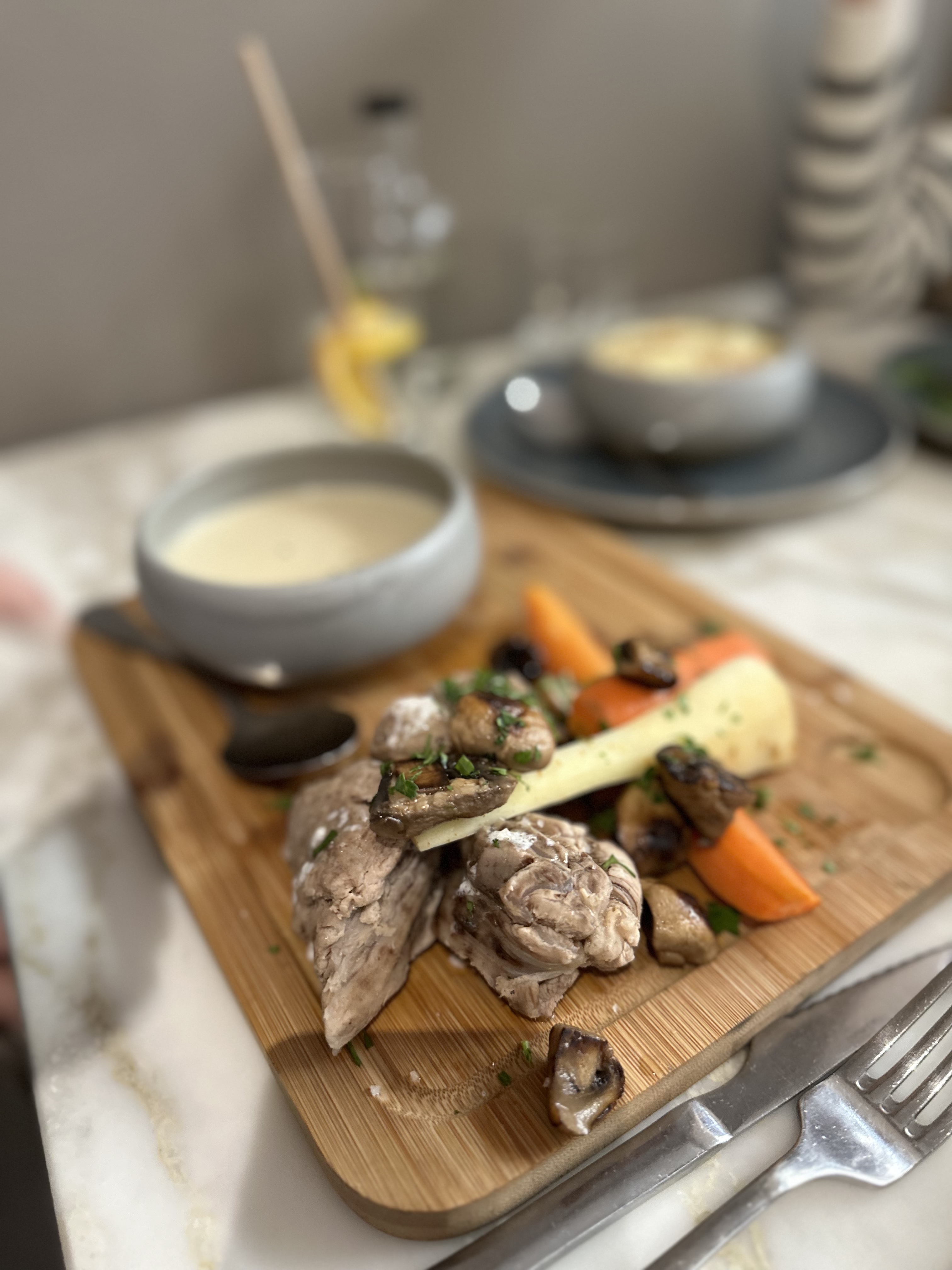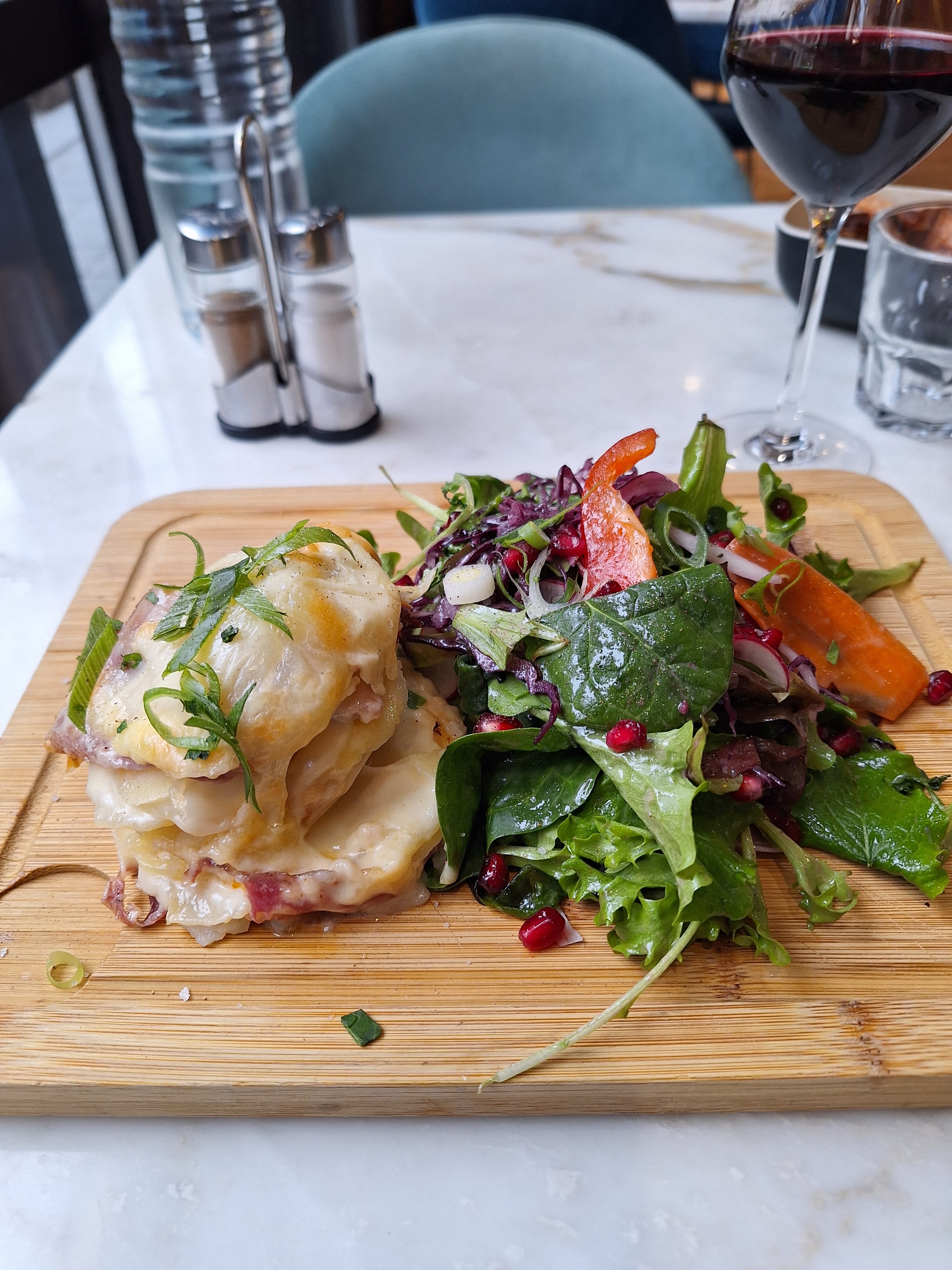 Concept curieux pour le dîner, puisqu'il faut choisir séparément les entrées et les accompagnements (ou ne pas les choisir), mais cela vaut la peine d'essayer. La viande était très bien cuite et la purée de pommes de terre était très crémeuse. Le dessert sans commentaires, un 10/10. Merci aux serveurs qui ont proposé de nous parler en anglais pour nous expliquer le fonctionnement du restaurant, c'est grandement apprécié lorsque votre niveau de français est moyen.
