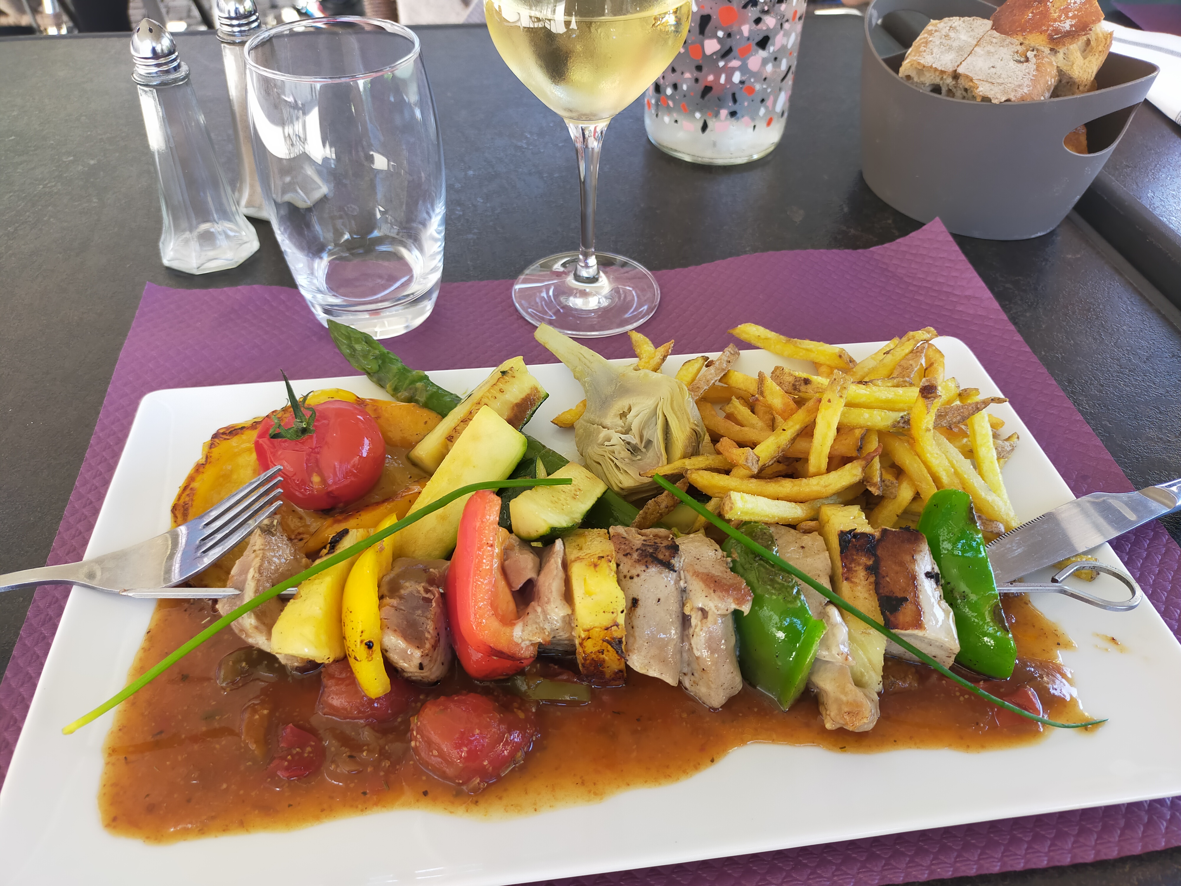 Excellent restaurant vue sur la place saint Étienne, 100% produit frais du terroir.