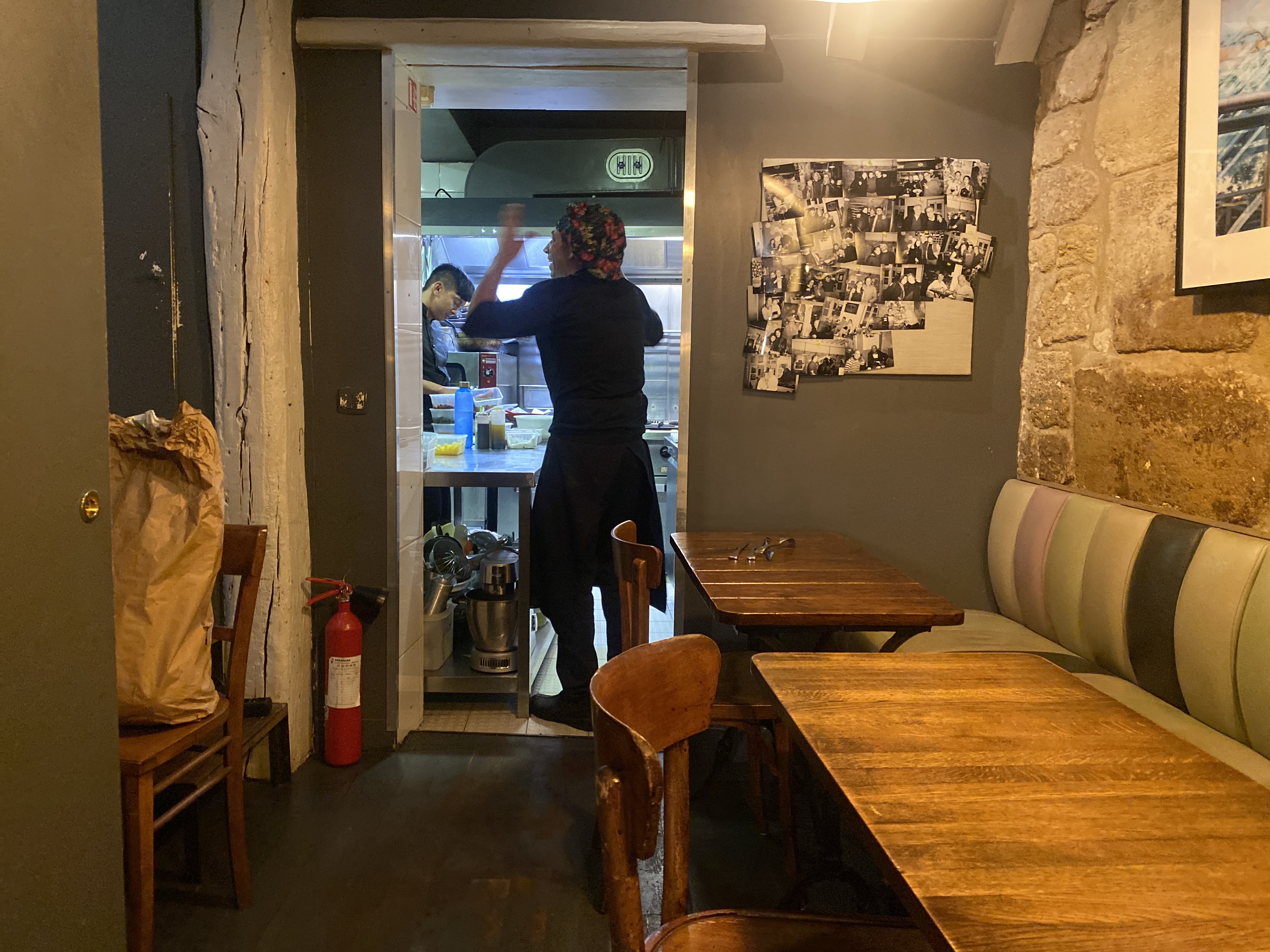 Une super équipe, un repas comme là-bas... Un petit voyage en Italie dans Paris. Les tables du fond sont un peu serrées mais on profite du spectacle de la cuisine...