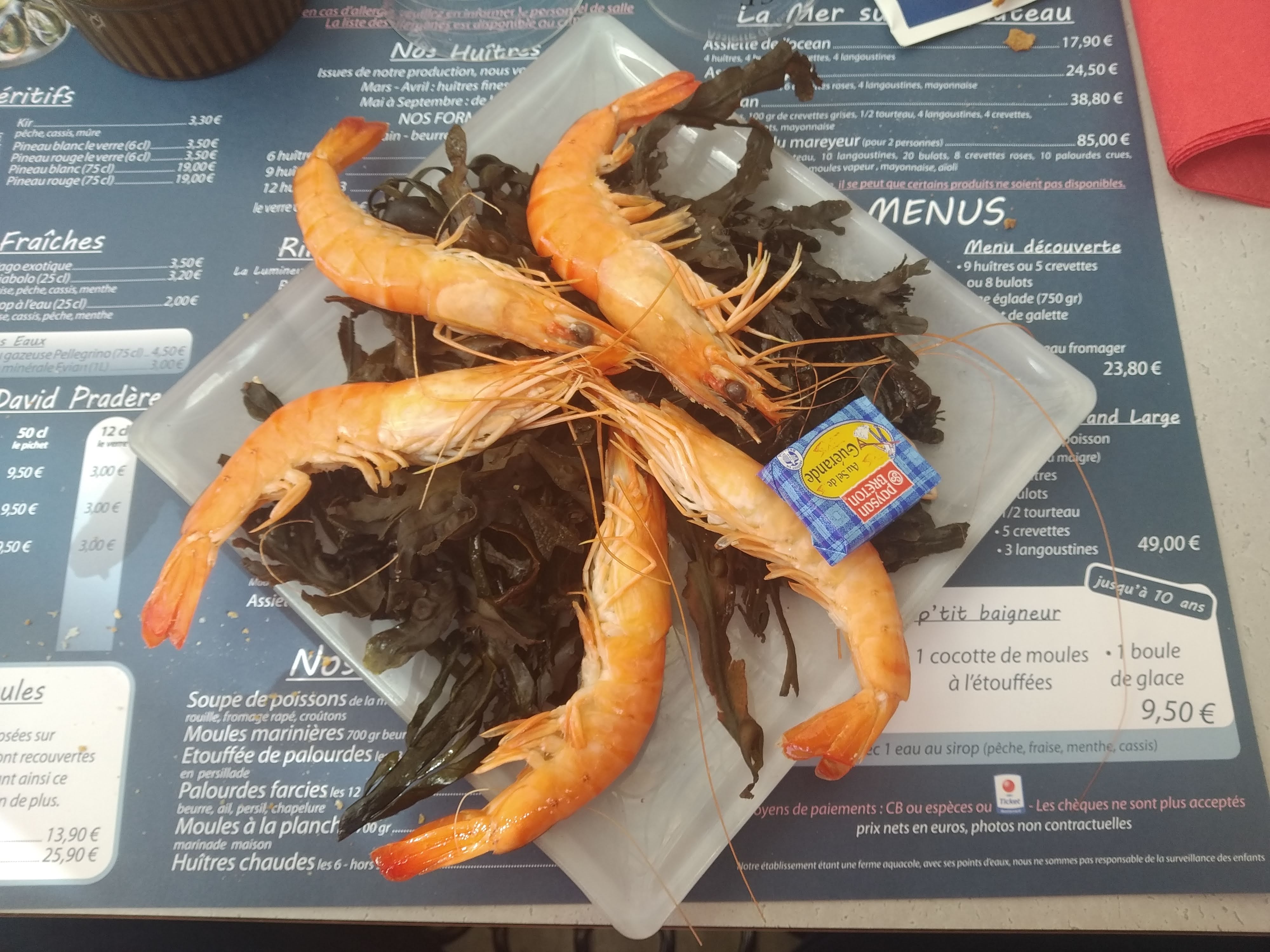 Nous avons pris le menu : huîtres et crevettes extra et Éclade excellente !