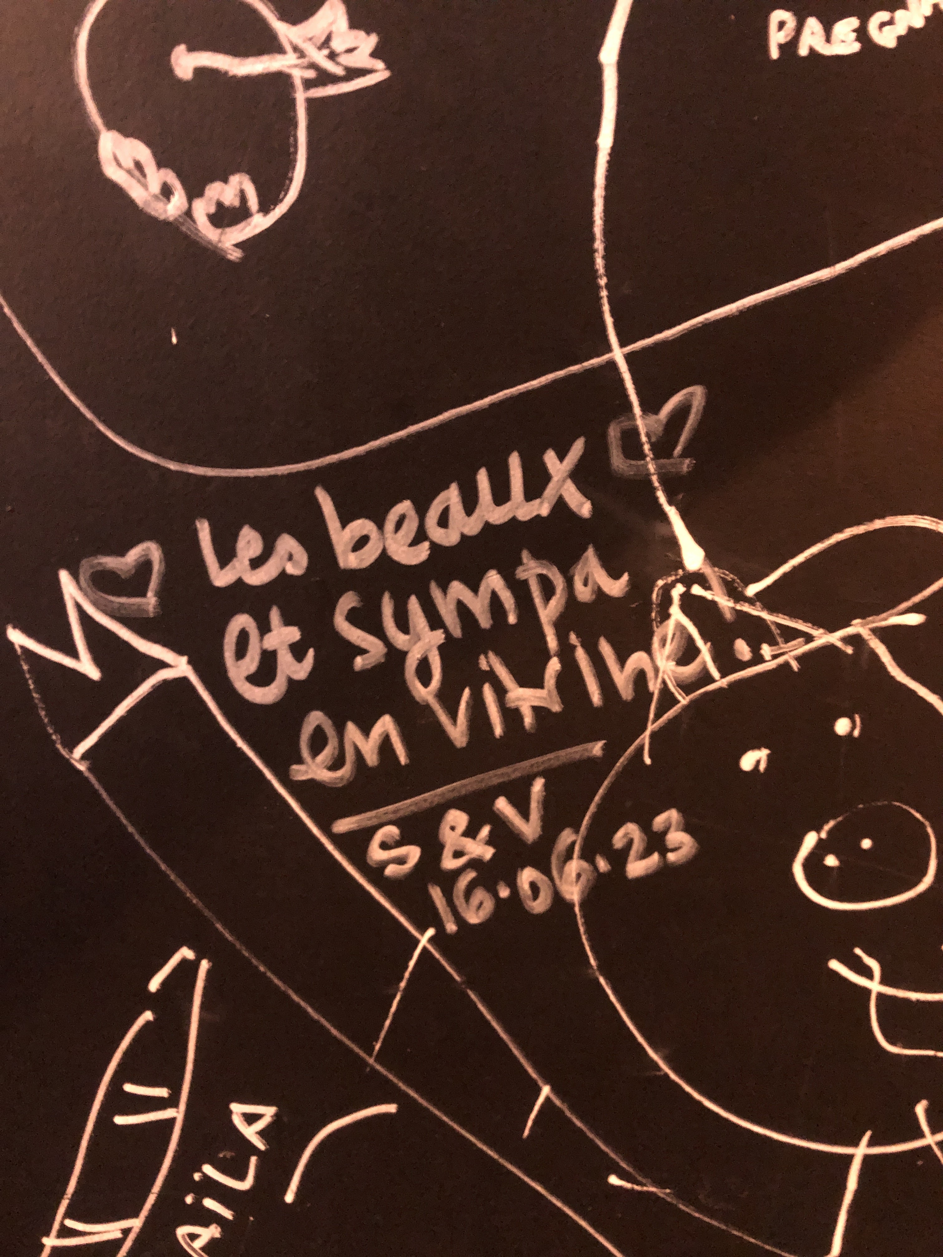 Super accueil ! Moment inoubliable ! C'est bon, c'est délicieux, c'est comme à la maison ! Bonne humeur assurée ! Les ados sont ravis ! Adresse incontournable ! Et si on a terminé son assiette, on peut écrire un petit mot sur le mur 😉 !