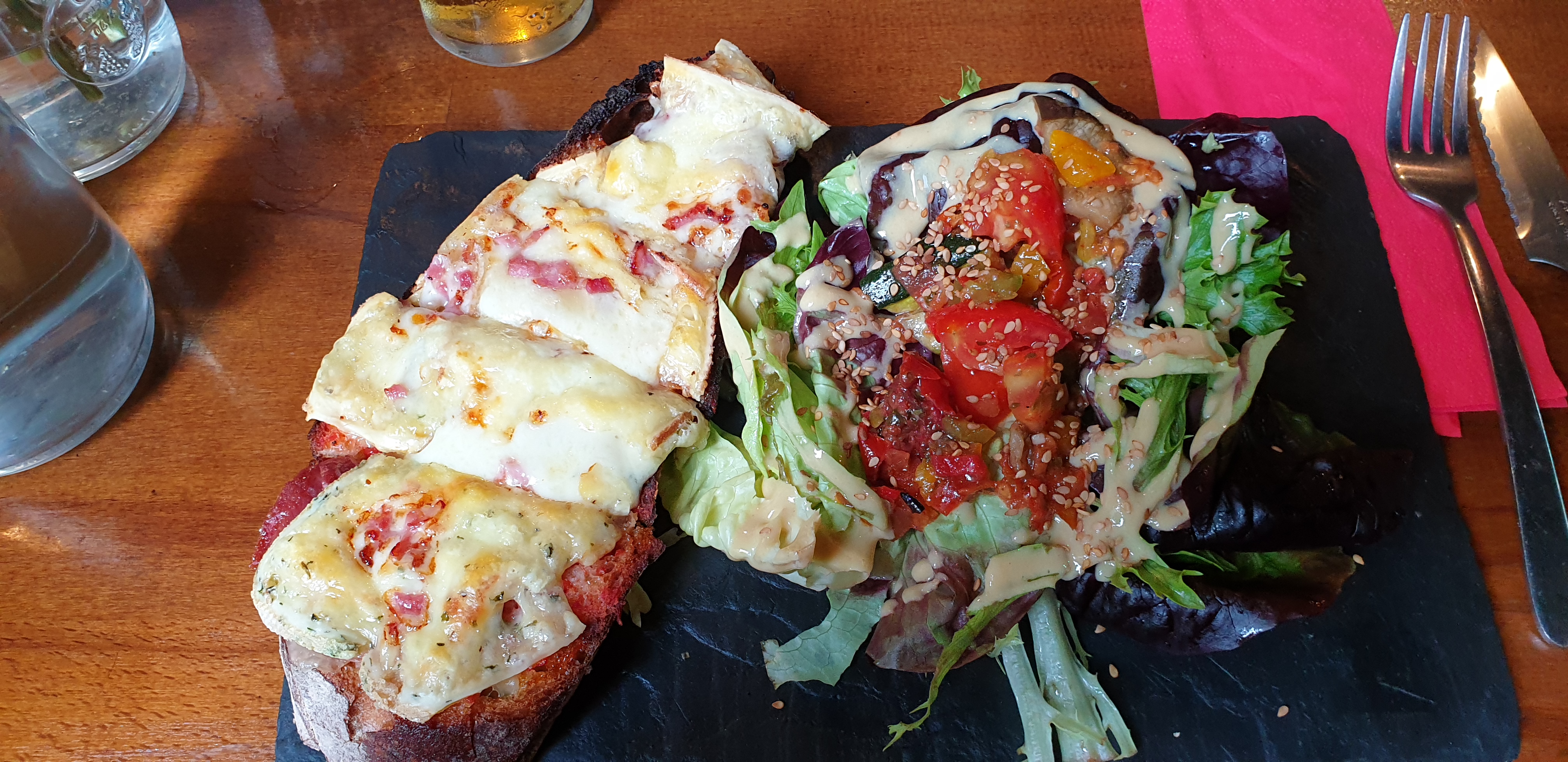 Nous avons bien mangé : une bière locale, une planche de tartine salée bien garnie, une part de tarte, un café. Ça c'est pour le coté restaurant. Sinon Thomas serveur humoriste se charge de dérider les clients dans une ambiance très conviviale. Nous recommandons. C est une excellente adresse.
