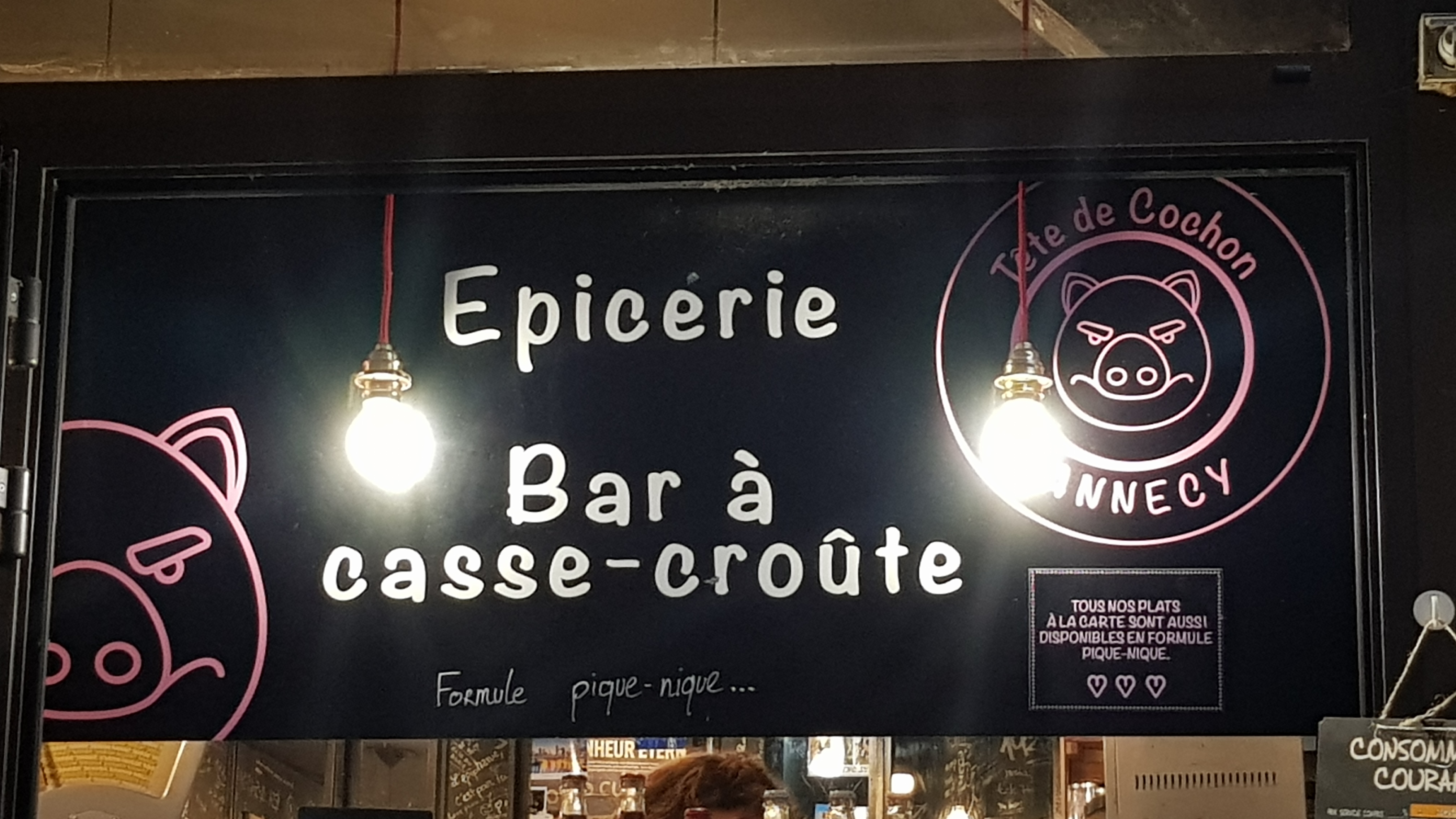 Jolie découverte dans Annecy le Vieux. Serveurs (euses) très sympas, accueil et service convivial. Petite carte sans prétention, agréable goûteuse, dans des tarifs contenus. Vous ne sortirez pas déçus. Si vous passez par la arrêtez vous, l'endroit le merite largement par rapport a de nombreux autres établissements du secteur. Et surtout si vous allez aux toilettes, ayez un moment de recueillement pour le cadre en place. Rien que pour ça, si je repasse par Annecy, je m'arrêterai de nouveau à la tête de cochon. Merci pour votre prestation.