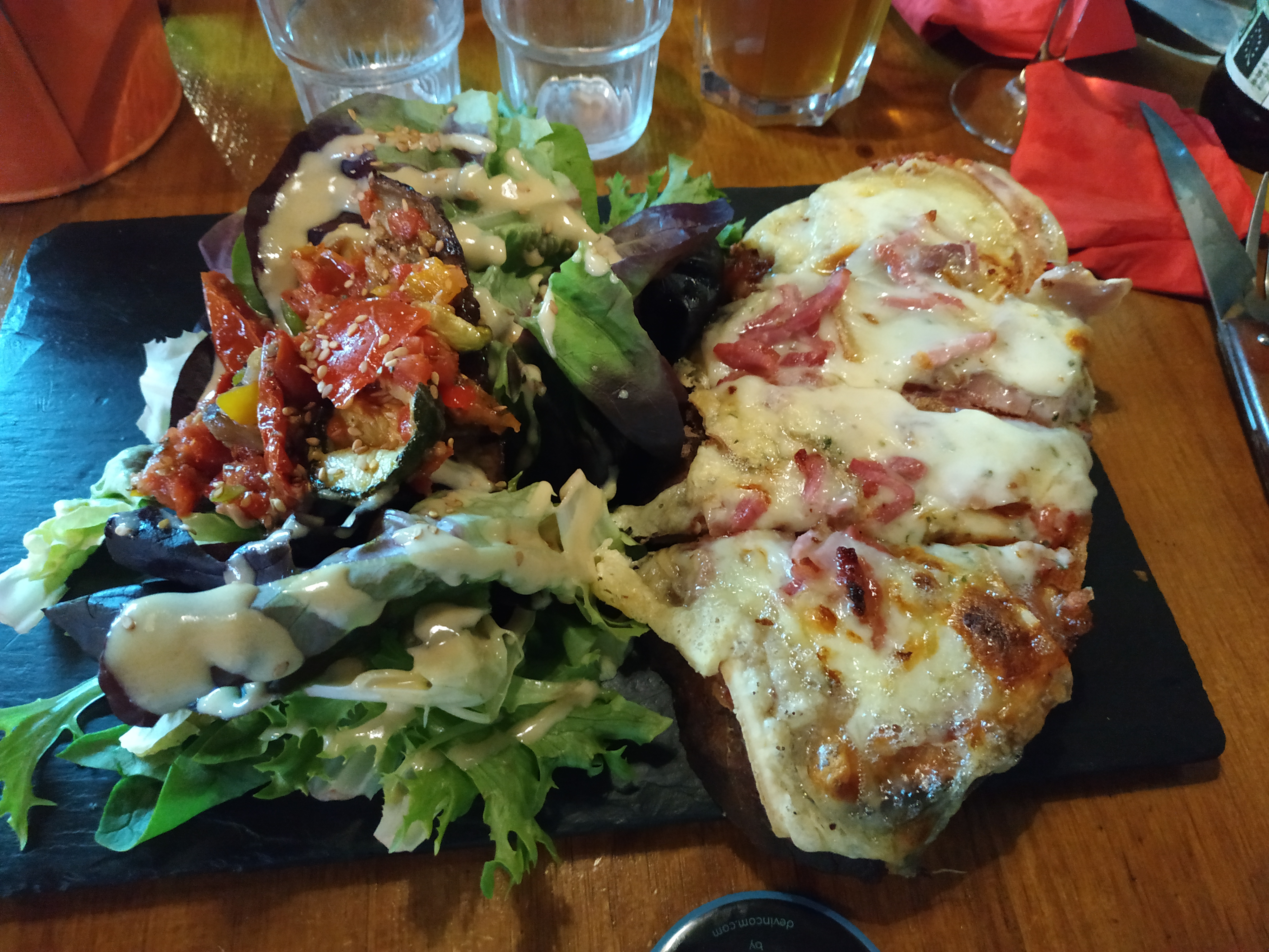 Accueil super chaleureux alors que nous étions chargés comme des gorets 🐷 On a mangé comme des cochons ! Assiettes délicieuses, très gourmandes, avec de bons ingrédients, et accompagnées de salade 🥗 Bonnes bières locales 🍻 Desserts gourmands 🍰 Tout parfait, merci !!