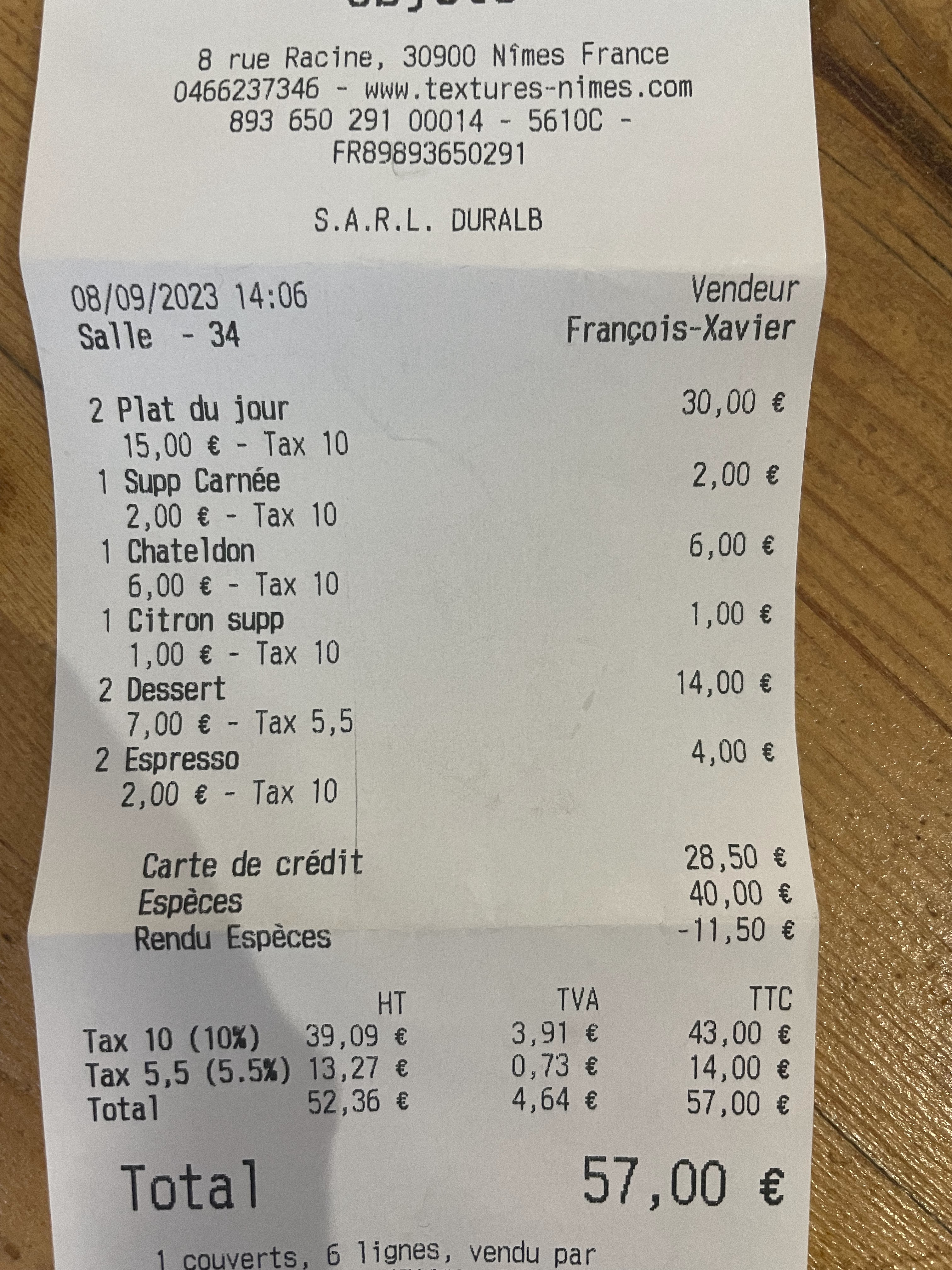 Voilà plusieurs années que nous fréquentions ce lieu si particulier et si chaleureux que FX anime avec énormément d’énergie et de professionnalisme. Les plats et desserts y sont toujours succulents, le choix des vins redoutable et l’accueil toujours chaleureux ! FX est toujours à l’affût de nouveaux ingrédients, recettes ou autres produits de nos placards de cuisine que l’on peut acheter sur place. J’aime bcp aussi y feuilleter des livres de cuisine qui nous mettent l’eau à la bouche, ou y trouver de la vaisselle et quelques objets déco ! Bref un lieu particulier à Nimes, plus qu’un restau, où nous aimons nous retrouver en couple, en famille ou entre amis !