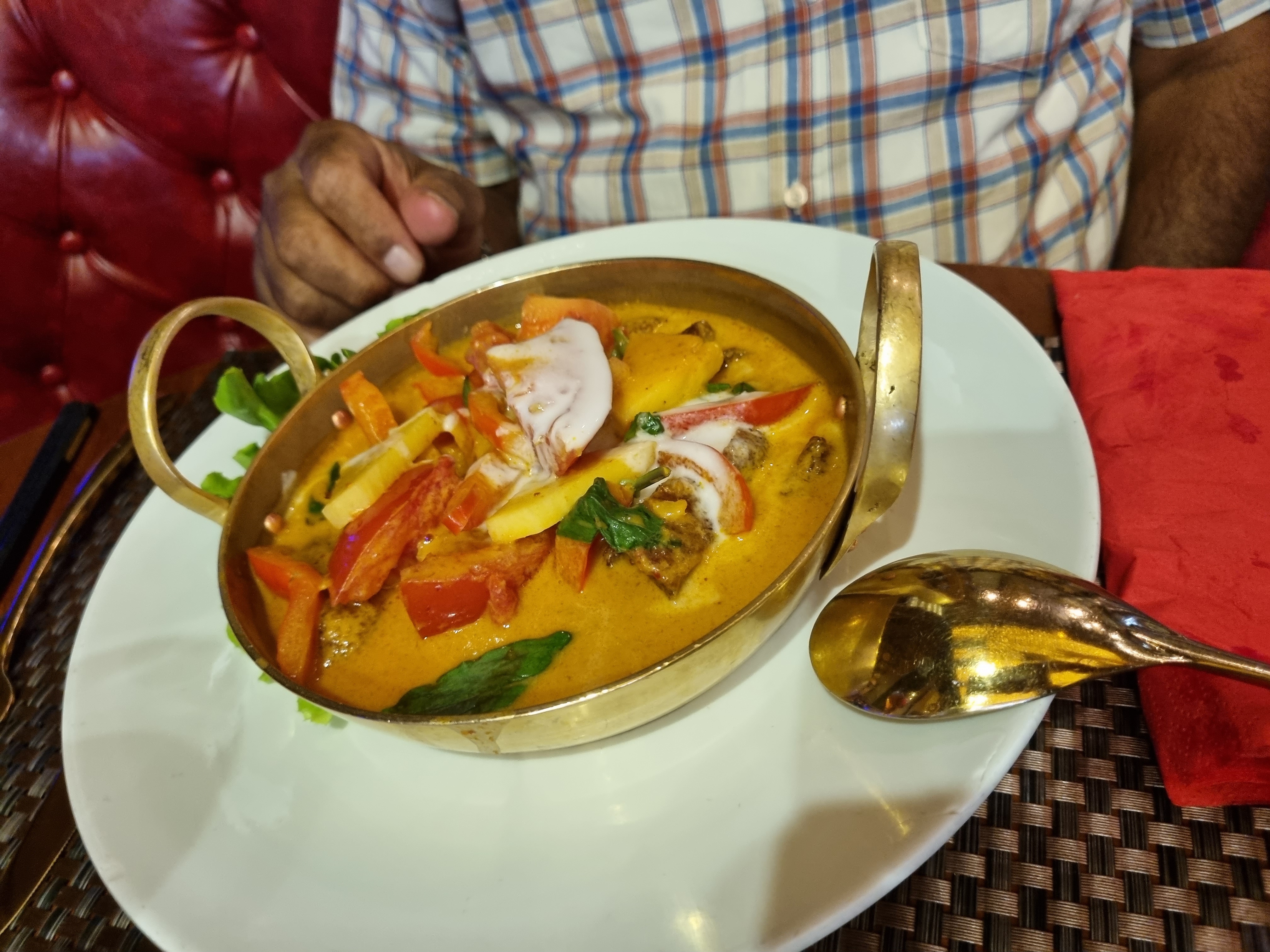 Service très lent, certains plats sont arrivés avant les entrées et ils ont oublié de servir les accompagnements, arrivés par conséquent bien après l'arrivée du plat principal. Les quantités sont pour la plupart assez importantes, excepté un plat de poisson/coco où il y avait quasiment rien à manger comparé aux autres. L'ensemble étant ni mauvais, ni transcendant, vous paierez un peu cher pour une qualité moyenne, mais en quantité avec un service loin d'être parfait.
