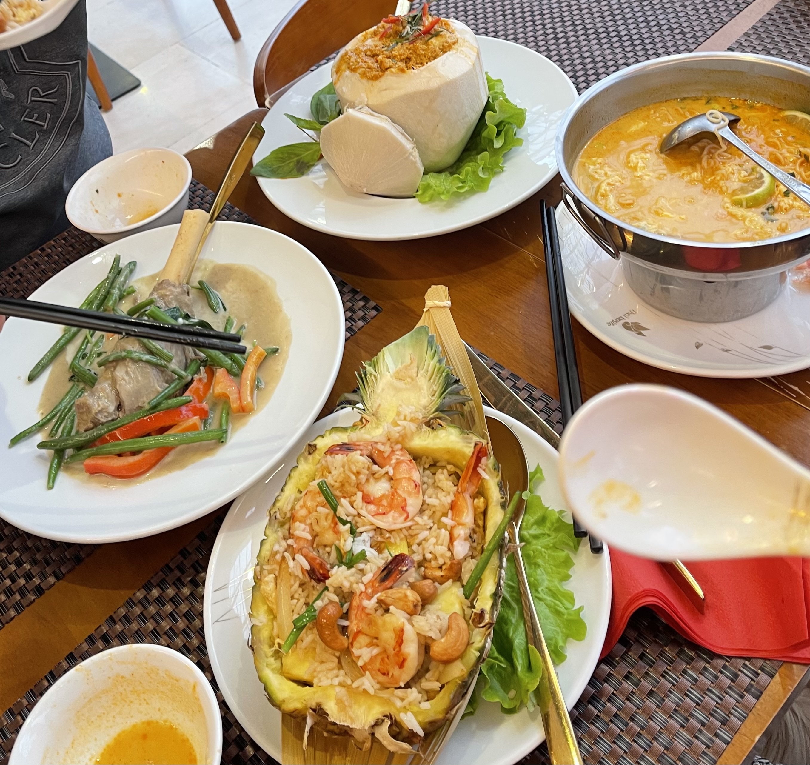 Envi d’une pause gourmande, ce restaurant saura vous satisfaire Véritable cuisine thaïlandaise dispensée par des chefs avec plus de 30 ans d’expérience Des plats non seulement très biens présentés mais très bons Décors super dépaysant avec une végétation luxuriante très belle J’ai beaucoup apprécié les jolis couverts dorés très chic Très bon accueil Service rapide Nous avons eu de belles recommandations Je recommande les yeux fermés