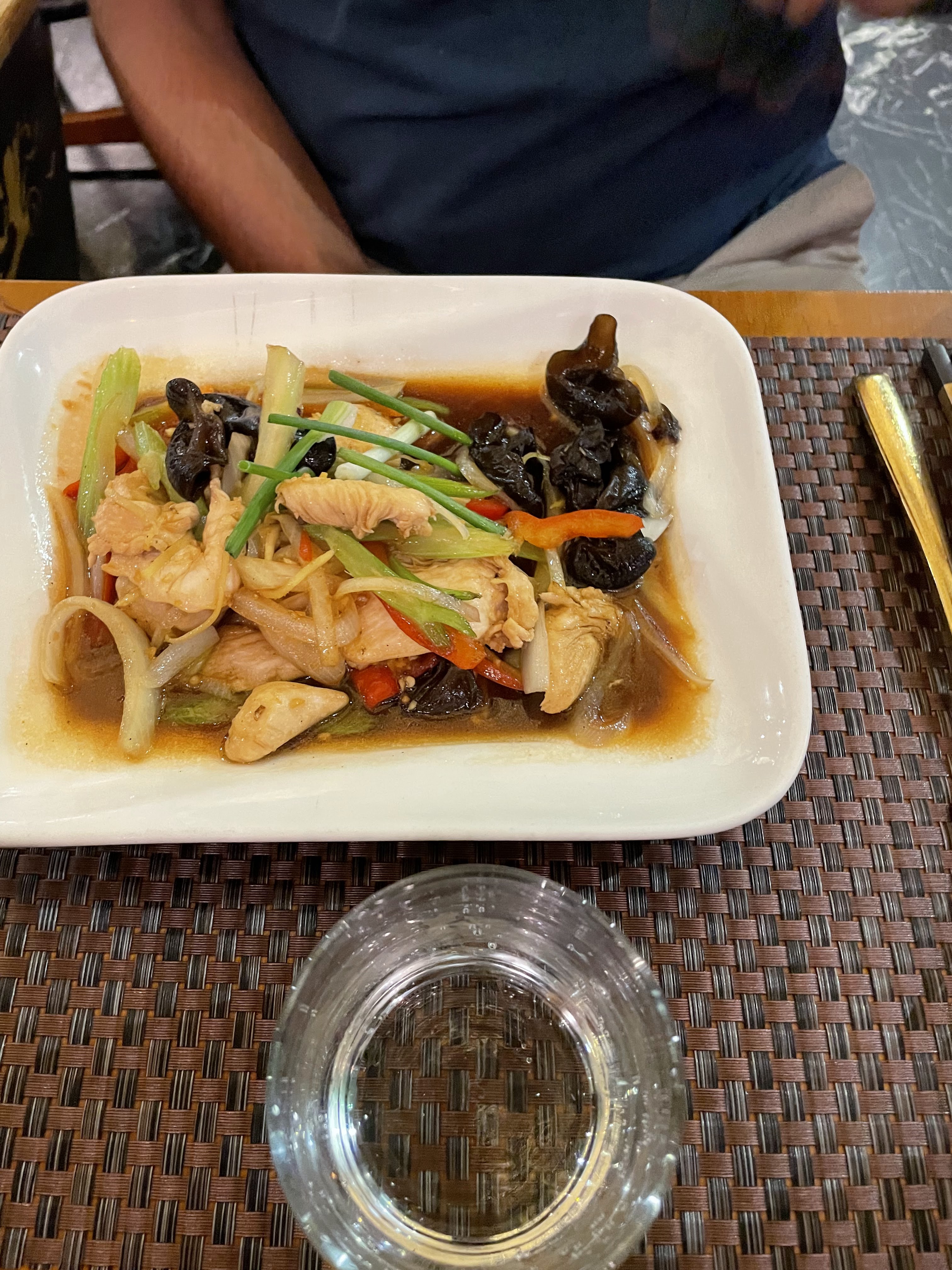 Poulet avait un arrière goût de viande la veille et pas bien cuit, riz cantonnais avec 3 morceaux de crevettes qui se battent en duel. Pas bon du tout, rien ne vaut les restaurants du 13e à Paris, je ne reviendrai pas