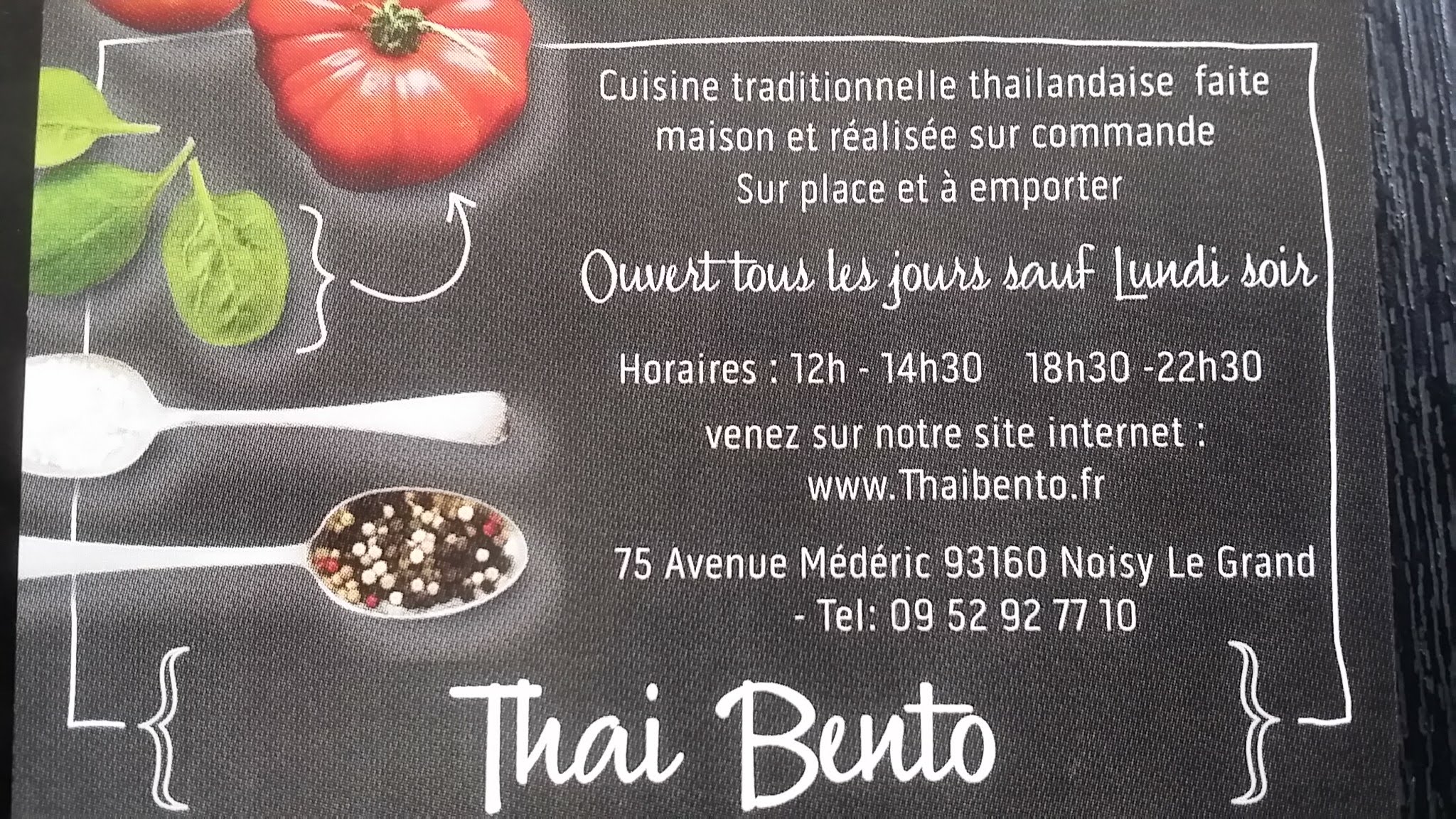 Voici toutes les informations sur le Restaurant thaï Thaï Bento qui ce trouve au 75 Av. Médéric, 93160 Noisy-le-Grand (93). Sur cette fiche vous trouverez les photos, l'adresse, les horaires d'ouverture, le numero de téléphone et les avis clients.Vous pouvez églement rédiger un avis si vous le souhaitez en bas de page.