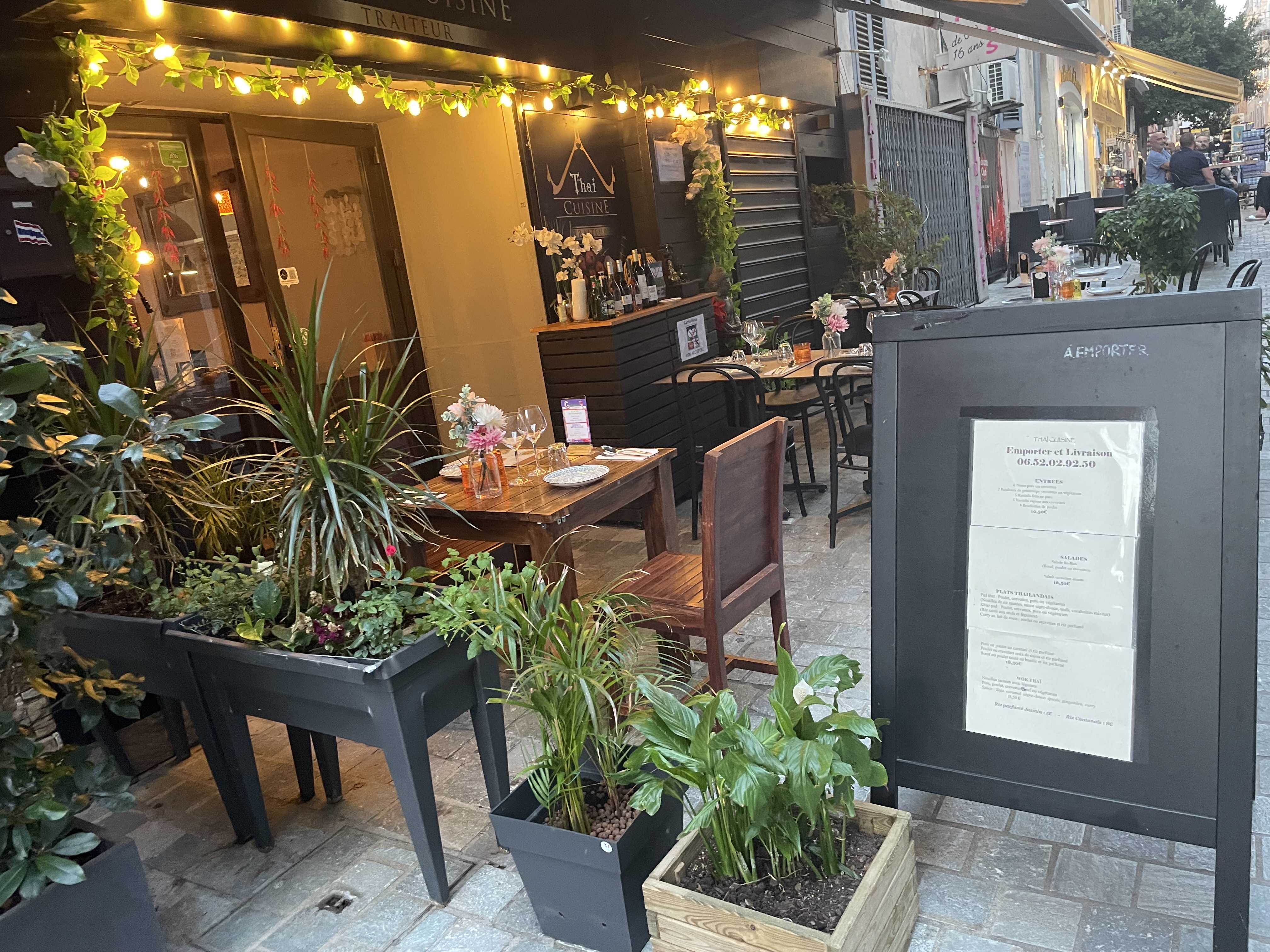 Restaurant centre ville sur la zone piétonne, plats frais et délicieux, cuisinés par une thaïlandaise, service par un corse très sympathique et chaleureux .A ne pas manquer!!
