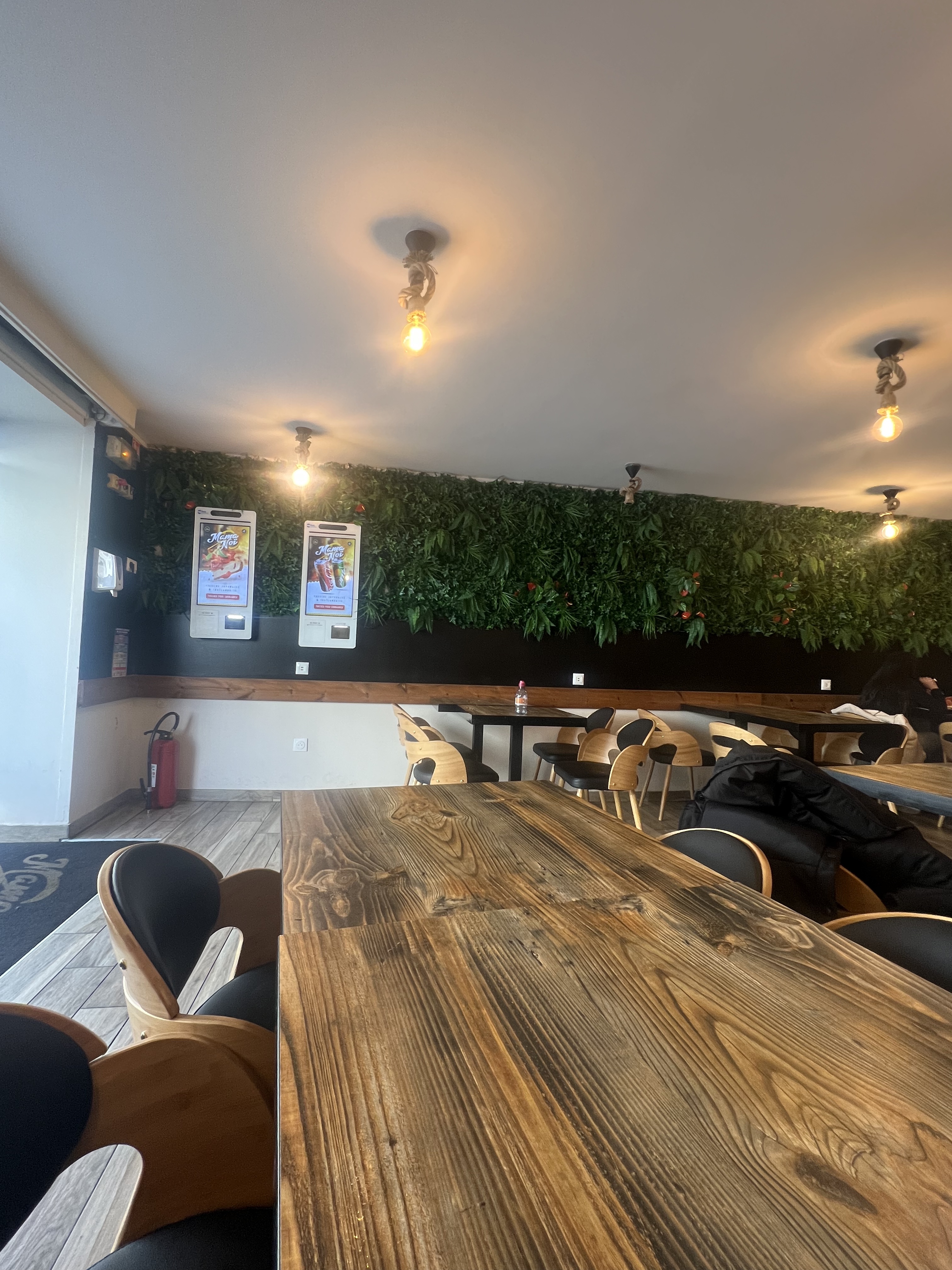 Le restaurant à l'intérieur et cosy. La commande est simple à réaliser : à la borne . Elle est traitée rapidement , les plats sont copieux et de qualité . Les prix sont raisonnables . Je recommande.