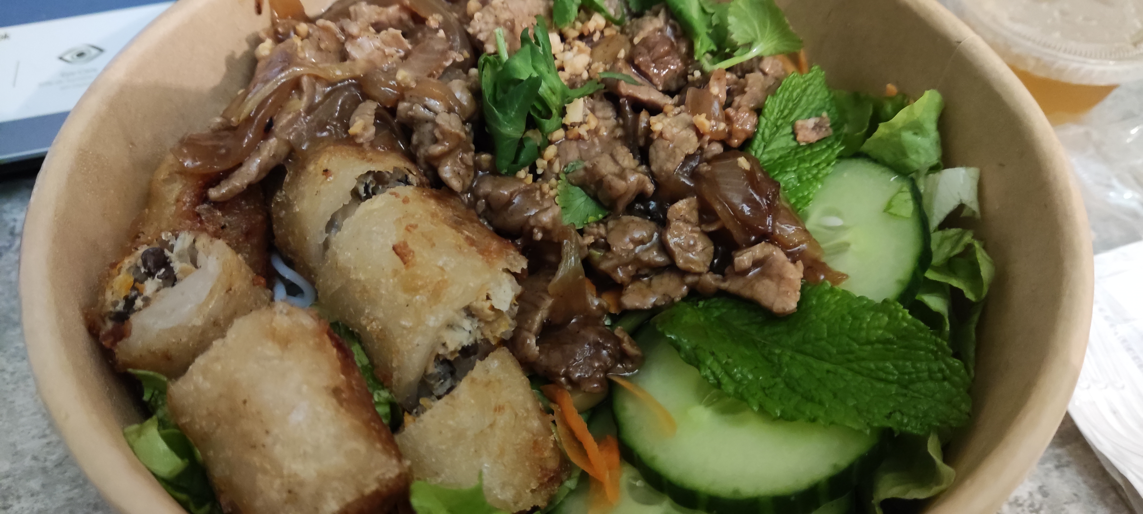 Le bo bun et le riz sauté sont très bons et parfaitement assaisonnés. La présentation du plat est soignée même à emporter!