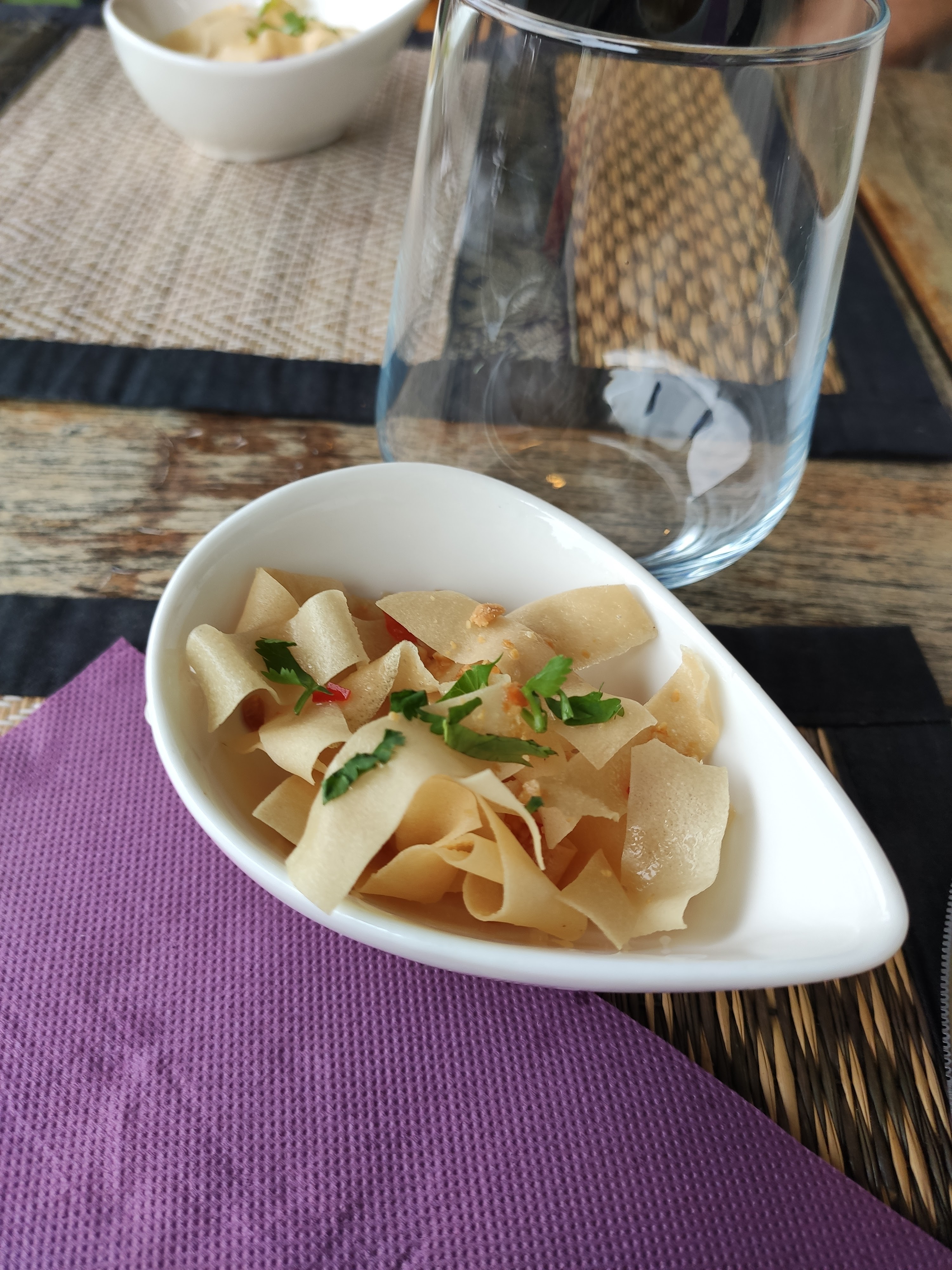 Bon accueil mais malheureusement tâches sur les sets de tables, sur les serviettes. Une heure d’attente avant le premier plat ! Plats très épicés non précisé sur la carte dommage.