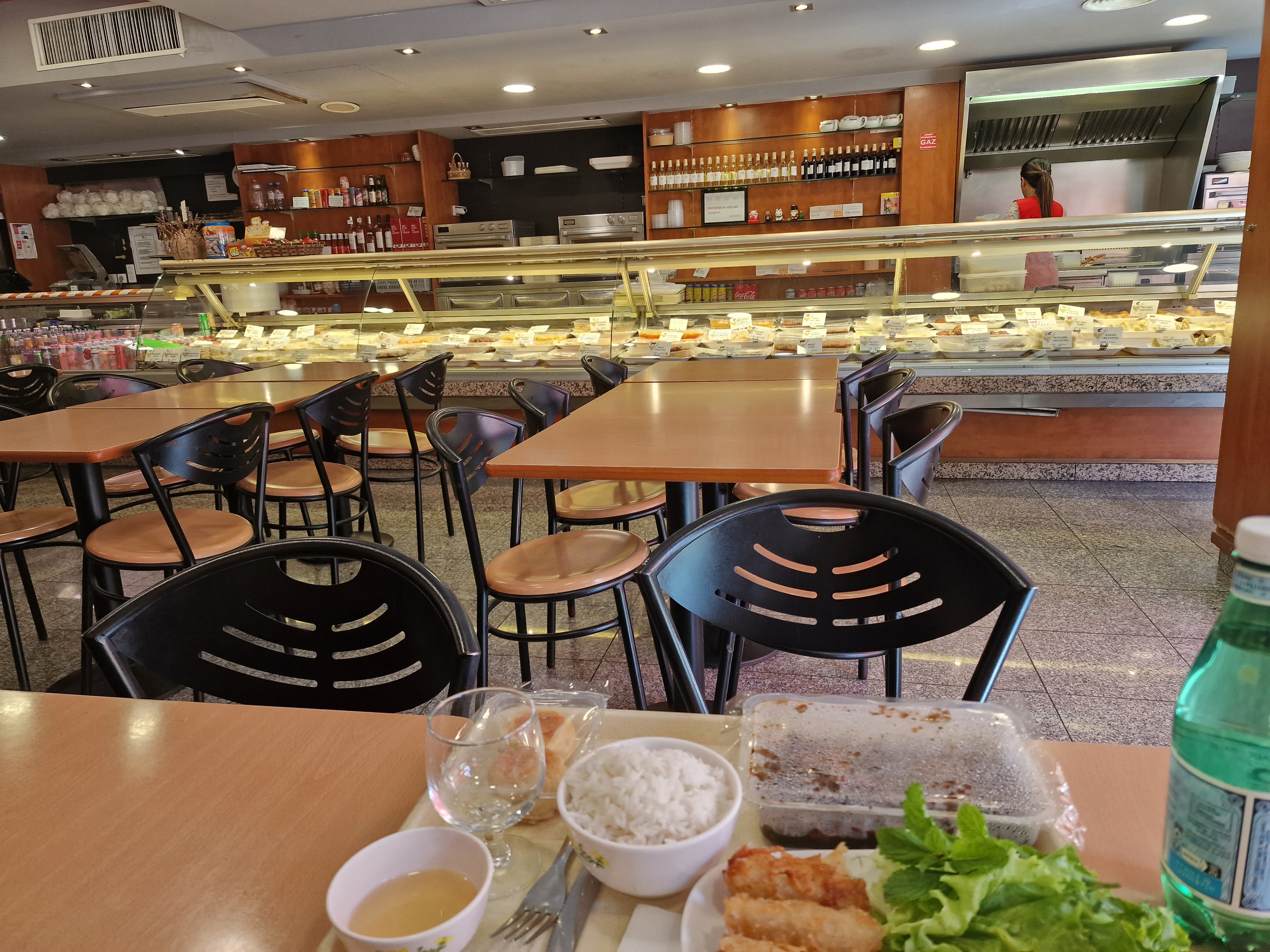 Cet endroit est considéré comme du « fast food » car tout est préparé et derrière des vitrines. Vous choisissez ce que vous voulez et ils le réchauffent pour vous. J'ai eu les rouleaux de printemps au poulet et aux crevettes. absolument délicieux. Le seul problème, c'était qu'il n'y avait pas de sauce aux prunes. Bon changement de rythme par rapport à la cuisine typiquement française.