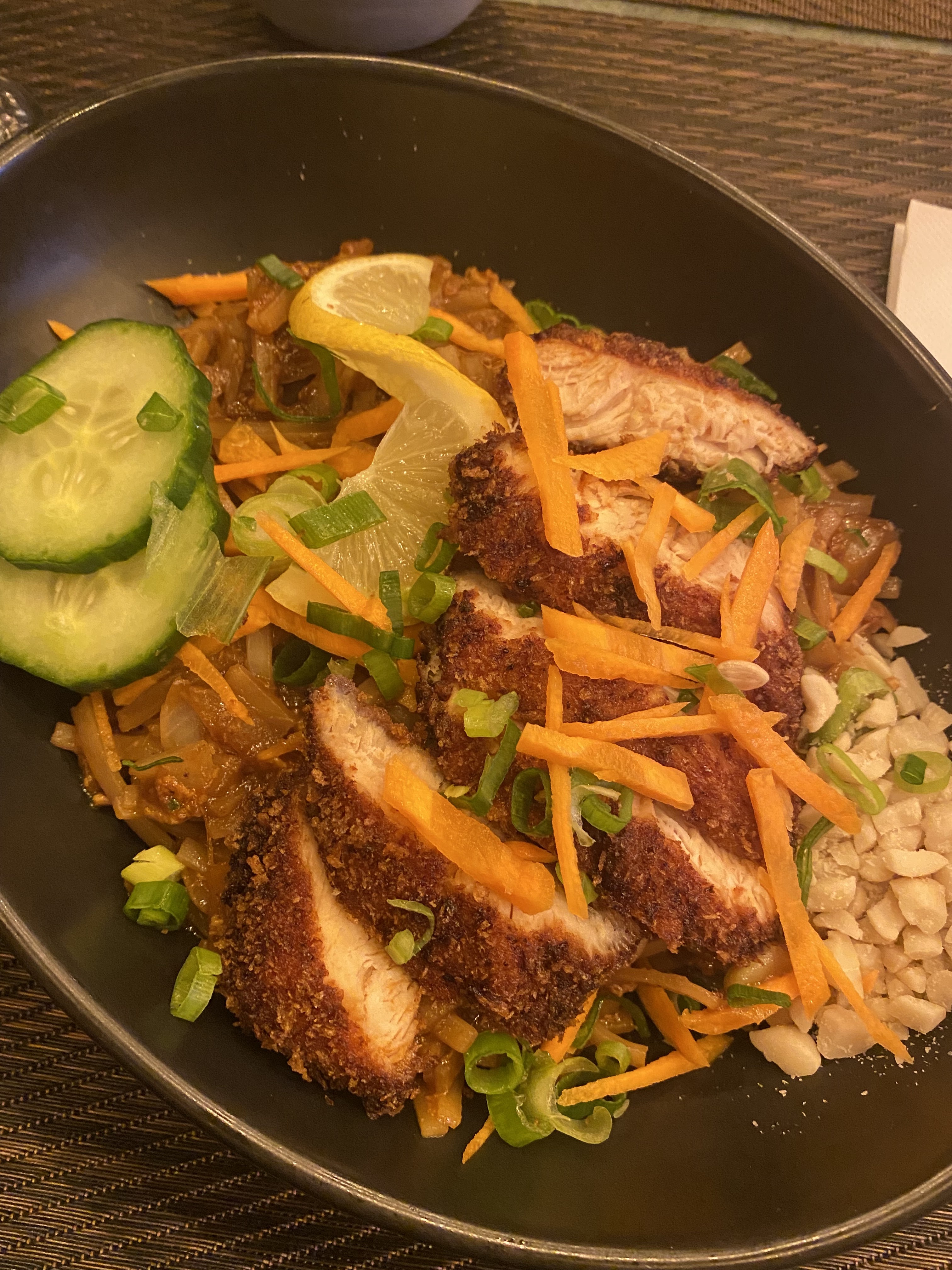 J'ai adoré un endroit chaleureux et je me suis régalé avec le pat thaï au poulet croustillant !!! Délicieux 😉👍