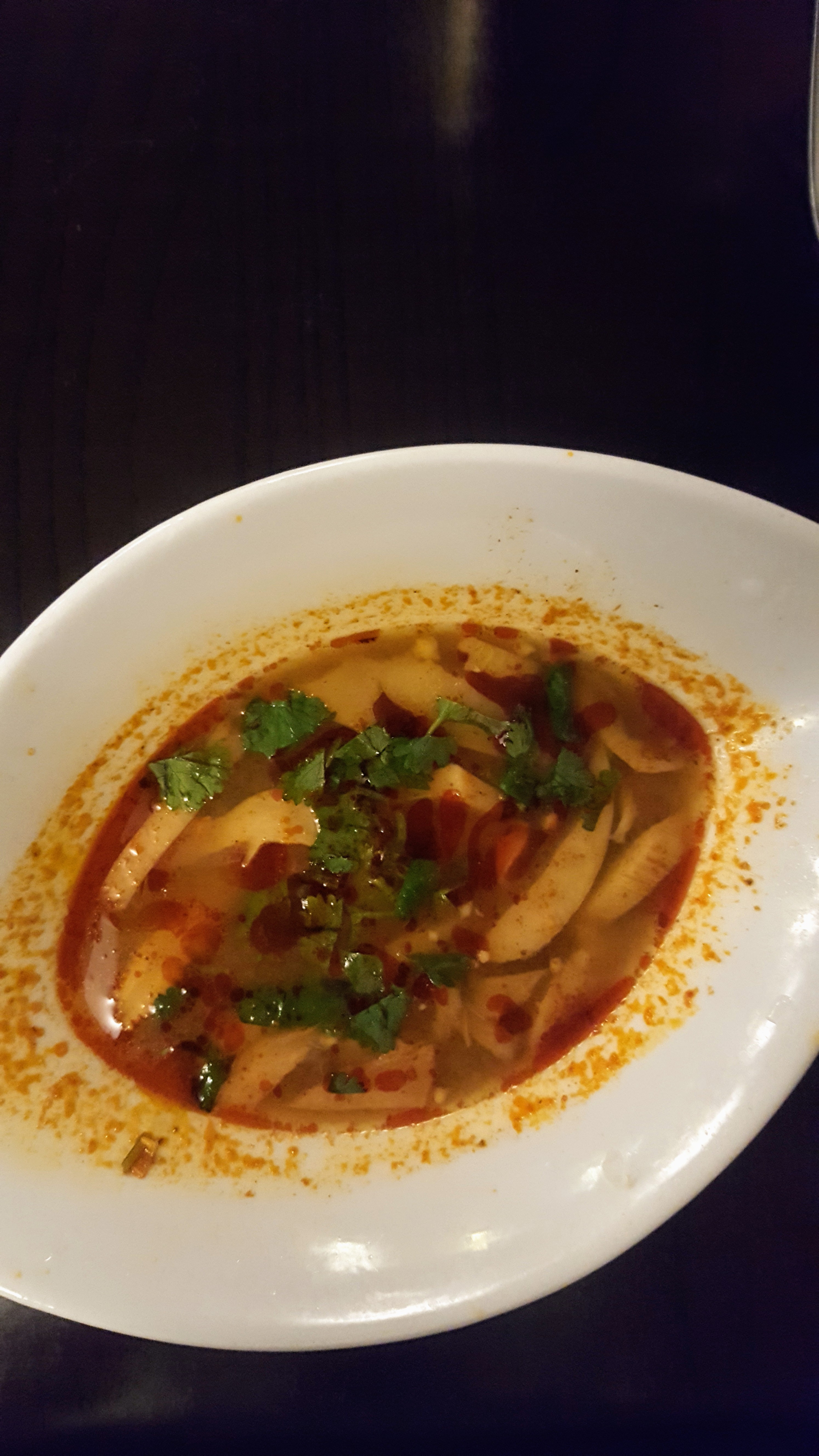 Soupe thaï sans goût servie dans un dé à coudre et vendue 7 euros (rien qu'un peu de lait de coco et un petit pois dans toute la soupe !), des brochettes de poulet minuscules servies brûlées avec une sauce satay liquide et insipide pour 15 euros... vraiment c'est mauvais. C'est même se foutre du monde.