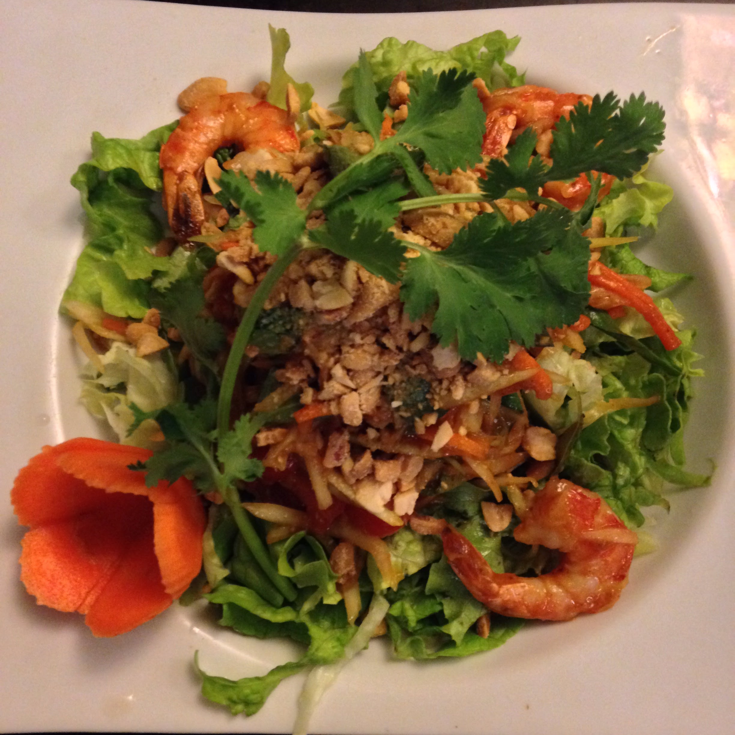 Super petit restaurant perdu dans une petit ruelle. Ambiance familiale, accueil chaleureux, serveuse très avenante. Nourriture pleine de saveur, prix très attractif, 2 menus entrées + plats et deux thés, 34€. Entrée: nems et soupe poulet coco Plat: poulet à la citronnelle et salade de mangue, porc et crevette. De très bon plat, plein de saveurs. Seul hic, crevette pleine d'eau (sûrement congelé) et le porc était du jambon. Mais sinon parfait.