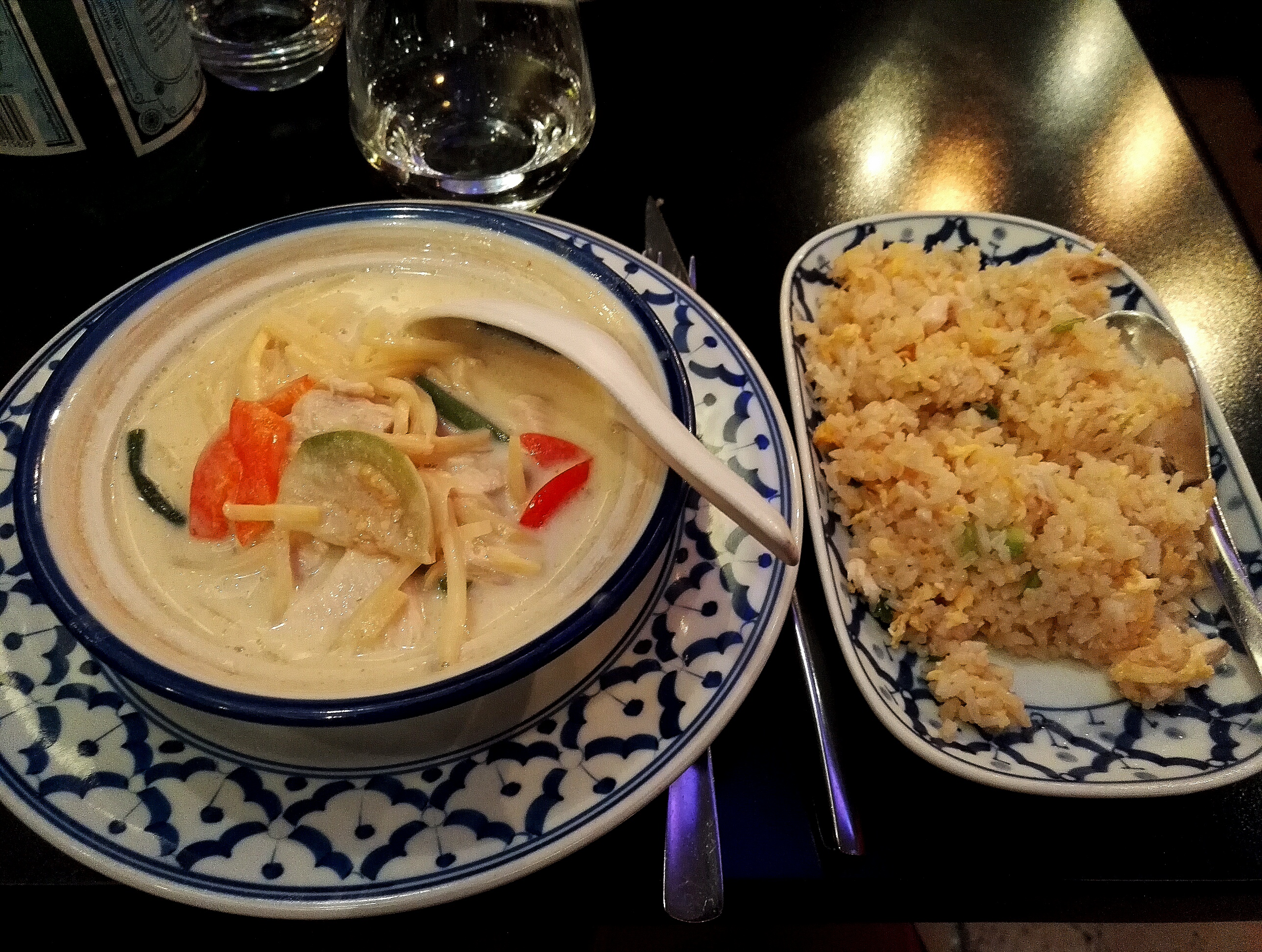 Une bonne adresse testée plusieurs fois. Soupe thaï crevette, coriandre fraîche, gingembre, crevettes pas trop cuites bouillon goûteux... curry vert bien équilibré. Menu à 18€ super rapport Q/P.