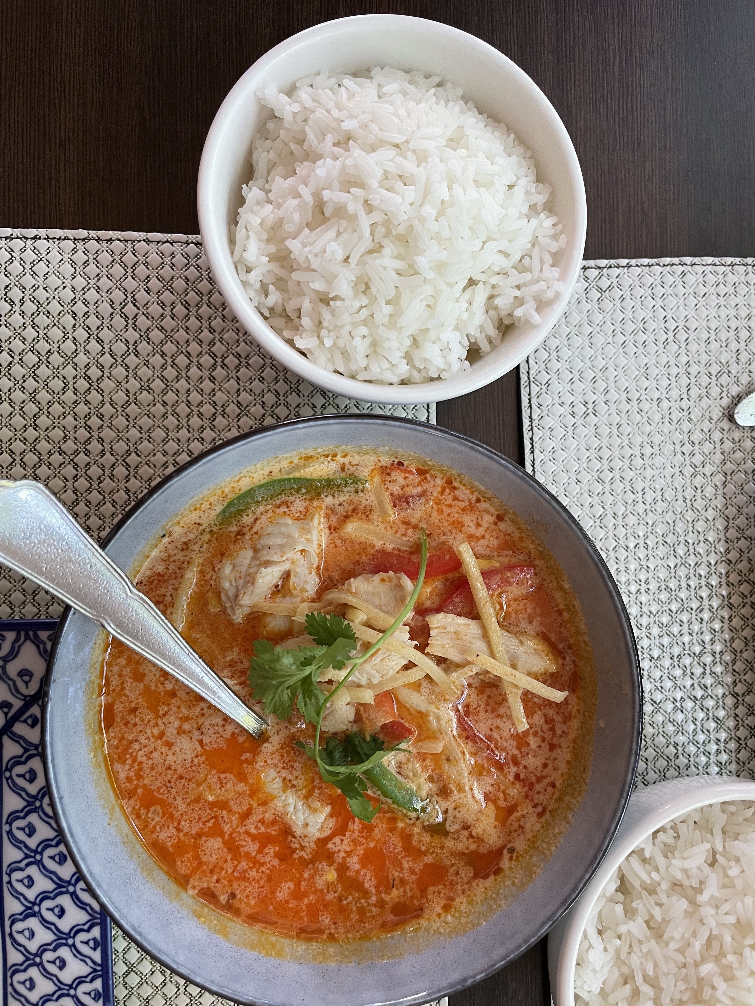 Nous avons adoré notre déjeuner chez Thaï Siam, où je conseille vivement de goûter la soupe de poulet au lait de coco ainsi que le poisson au curry à la vapeur. Nous avons été très bien accueillies, c’était vraiment un plaisir!