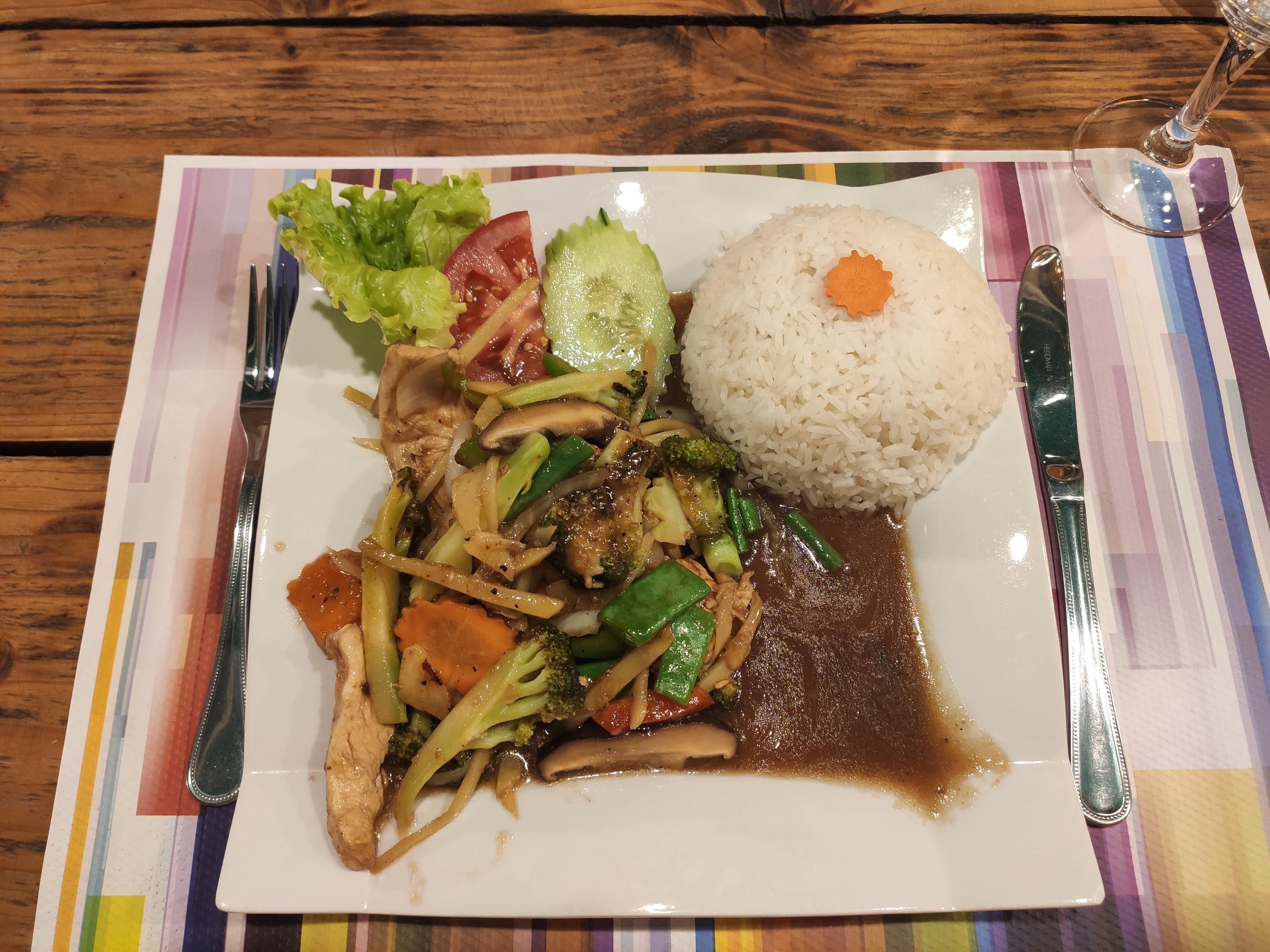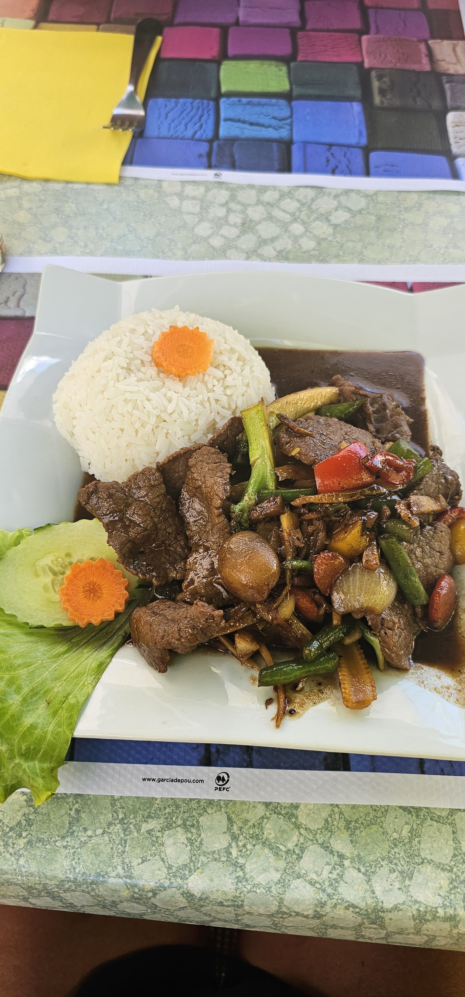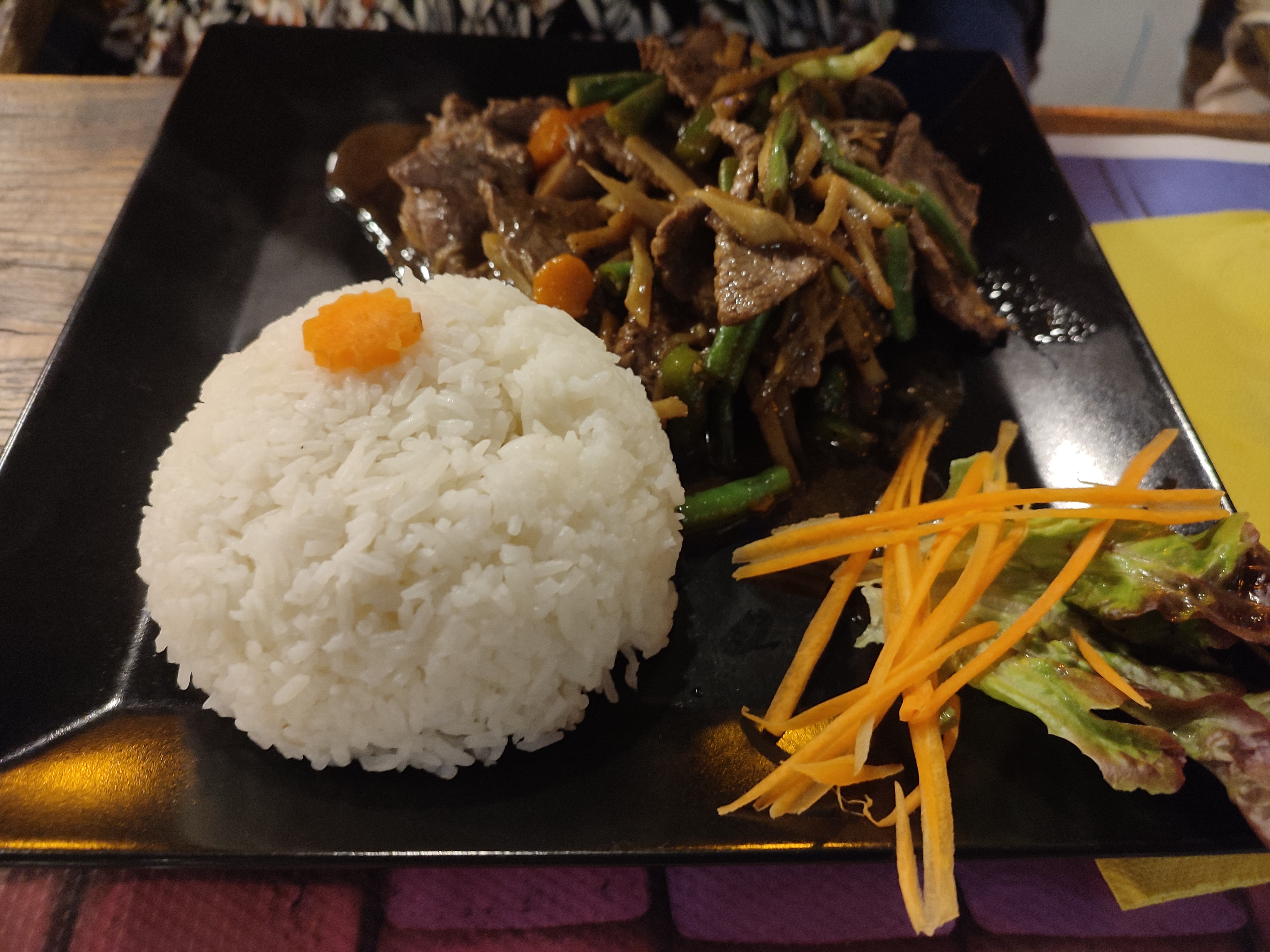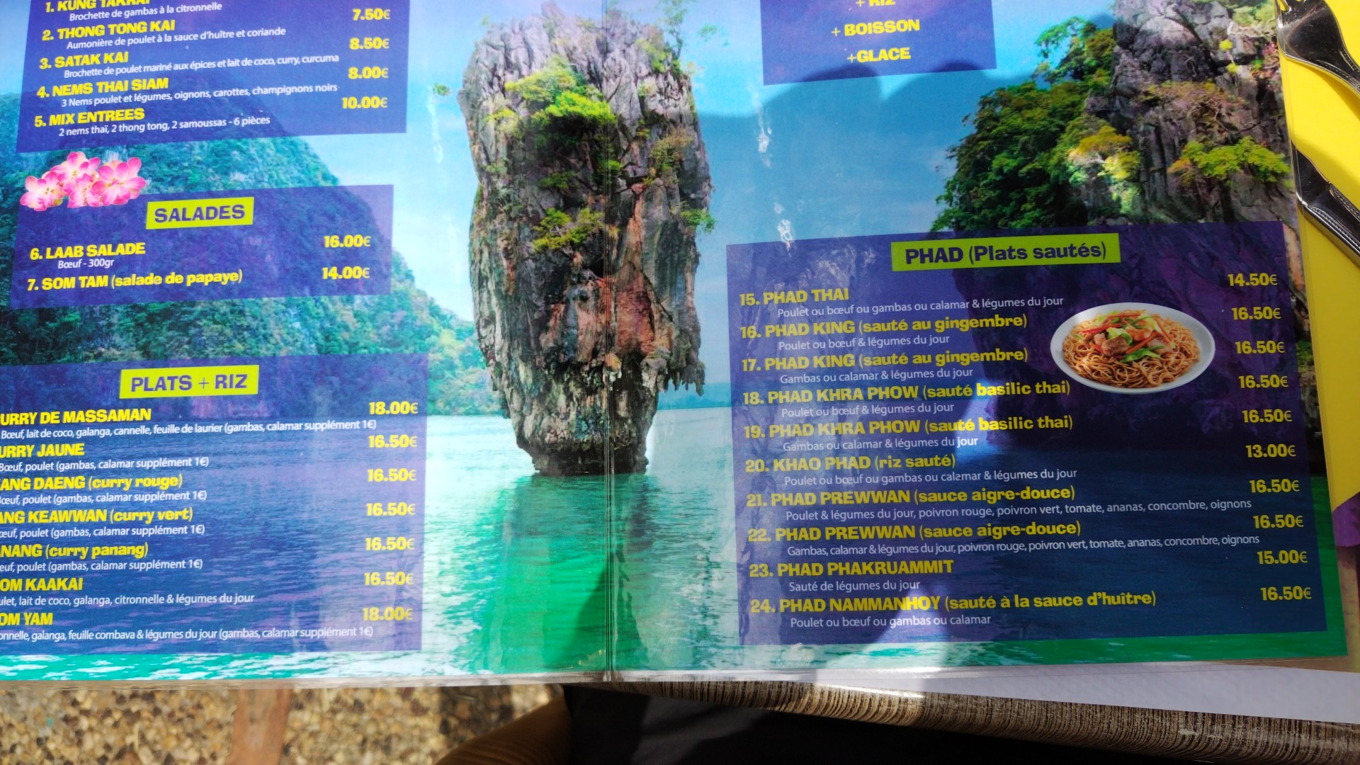Un très beau moment passé pour le déjeuner à midi....une belle carte au couleur de la Thaïlande..nous avons choisis le boeuf sauté au gingembre (Phad king) et le curry jaune ..une explosion de saveur !! Les petits légumes sont frais et croquants, cuisiné minutes en face de vous.. c' est du frais c est certain !! Je recommande a 1000 pour cent ..et le tout pour un prix vraiment correct ..merci pour ce beau voyage