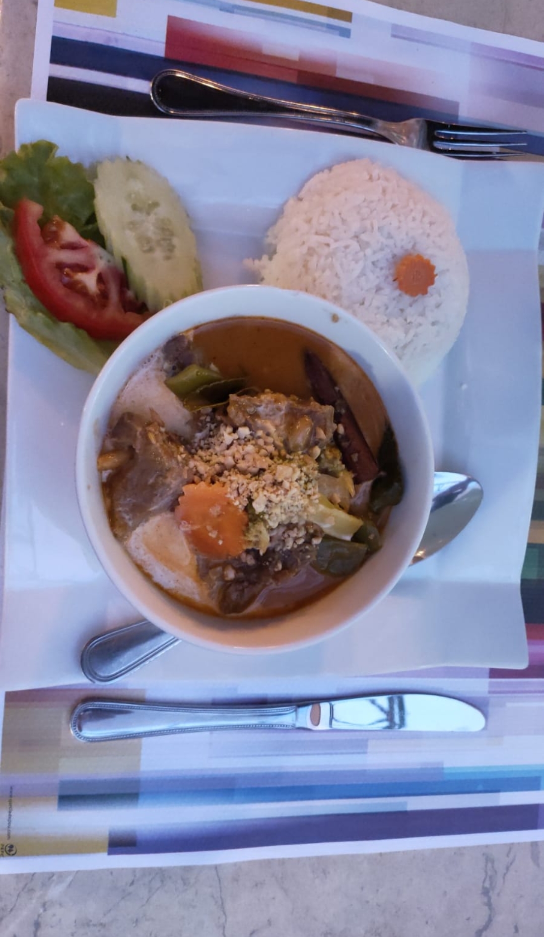Plats très bons et très fins, comme en Thaïlande. On a testé le massaman, panang et padthai, nous avons beaucoup aimé et cela nous a rappelé nos vacances passées en Thaïlande.