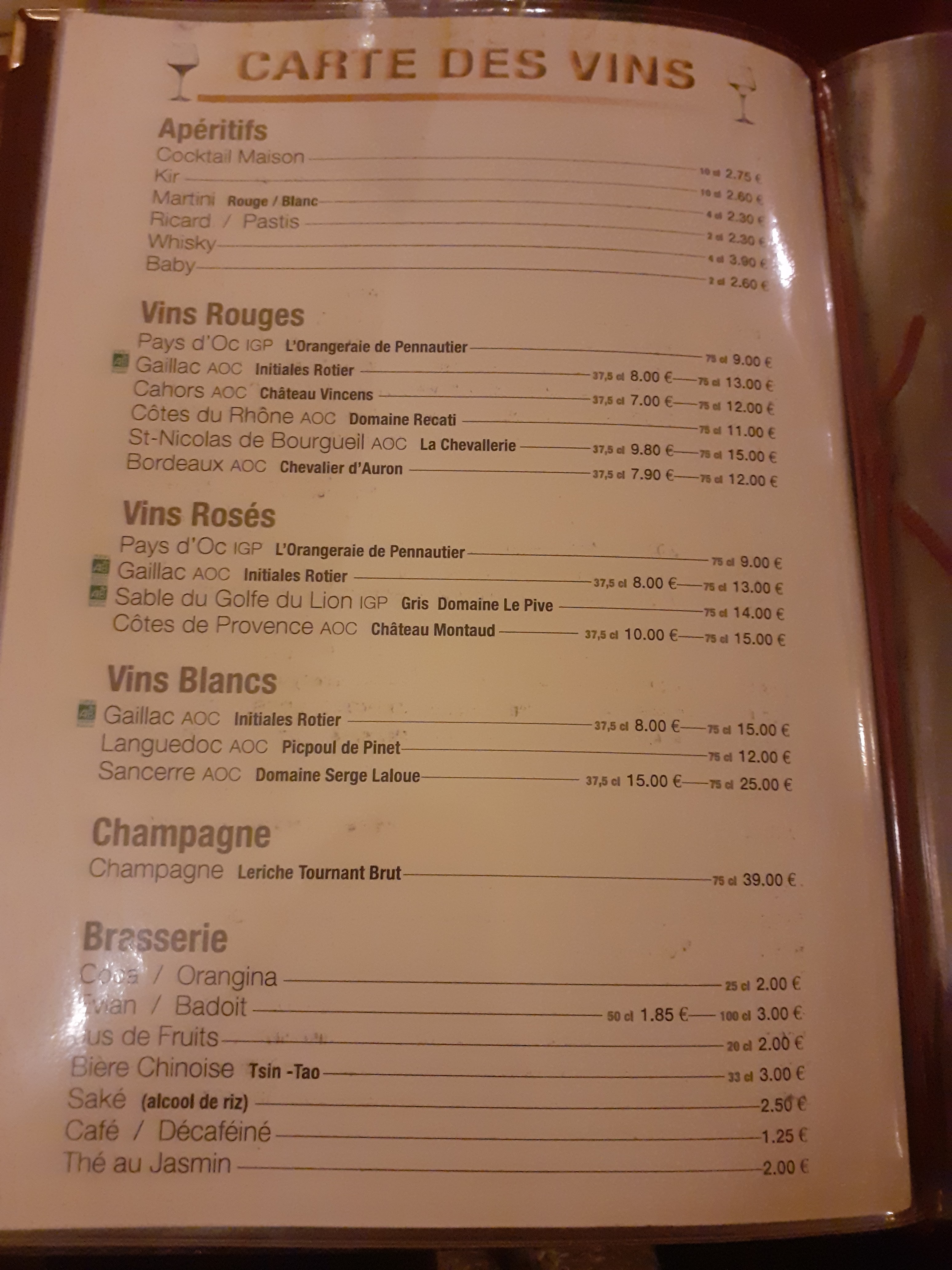 ATTENTION ! Nous avons pris un menu à 14€. Les plats paraissaient appétissants et bons, mais .... Mon épouse a été malade dans la nuit, et moi même, plus tard dans la journée du lendemain. Nous ne pensons pas que cela vienne de la nourriture, mais plutôt d'une vaisselle mal désinfectée, ou une table mal désinfectée, qui nous a transmis la gastro .... Dommage, nous n'y reviendrons pas.
