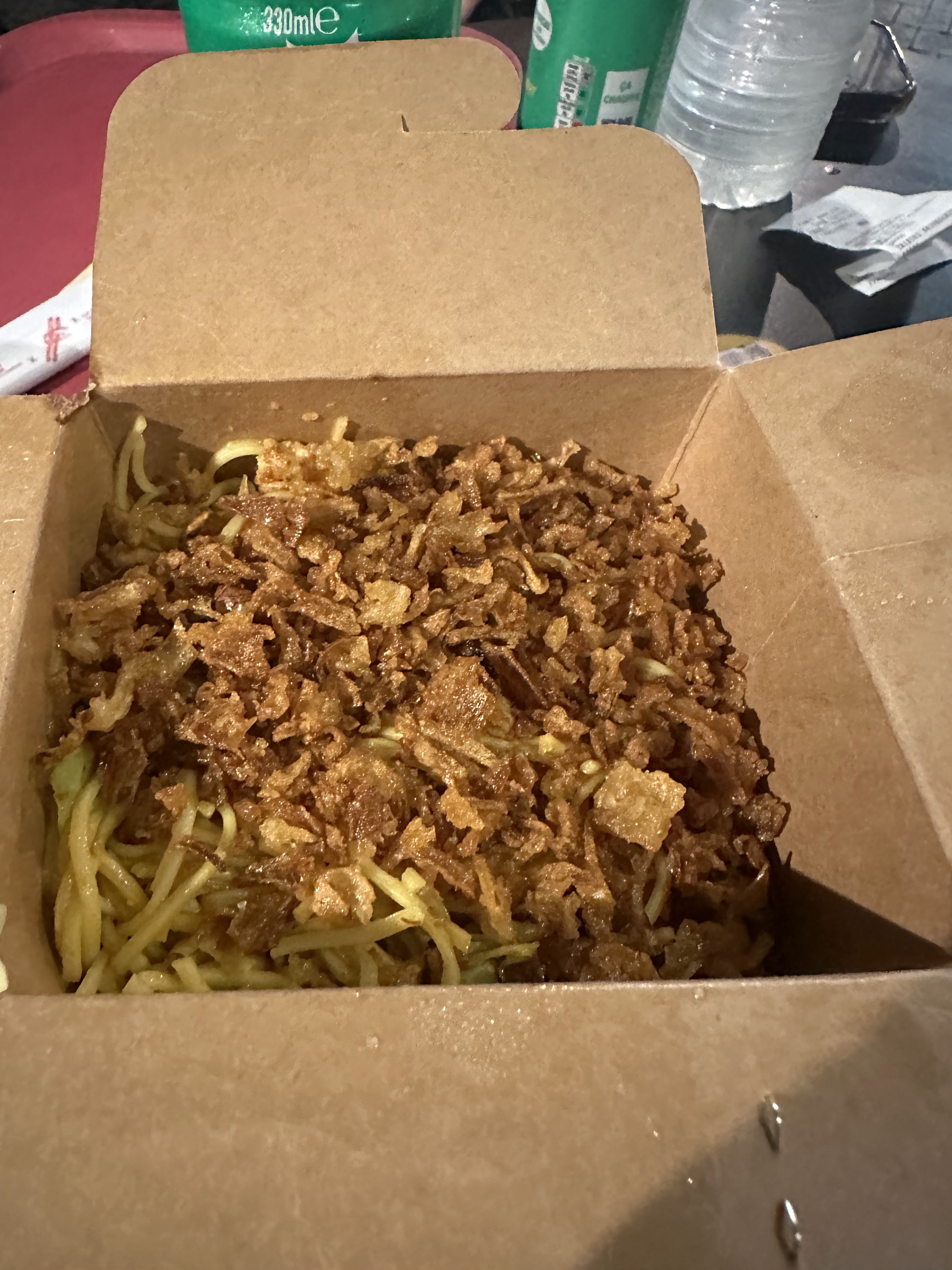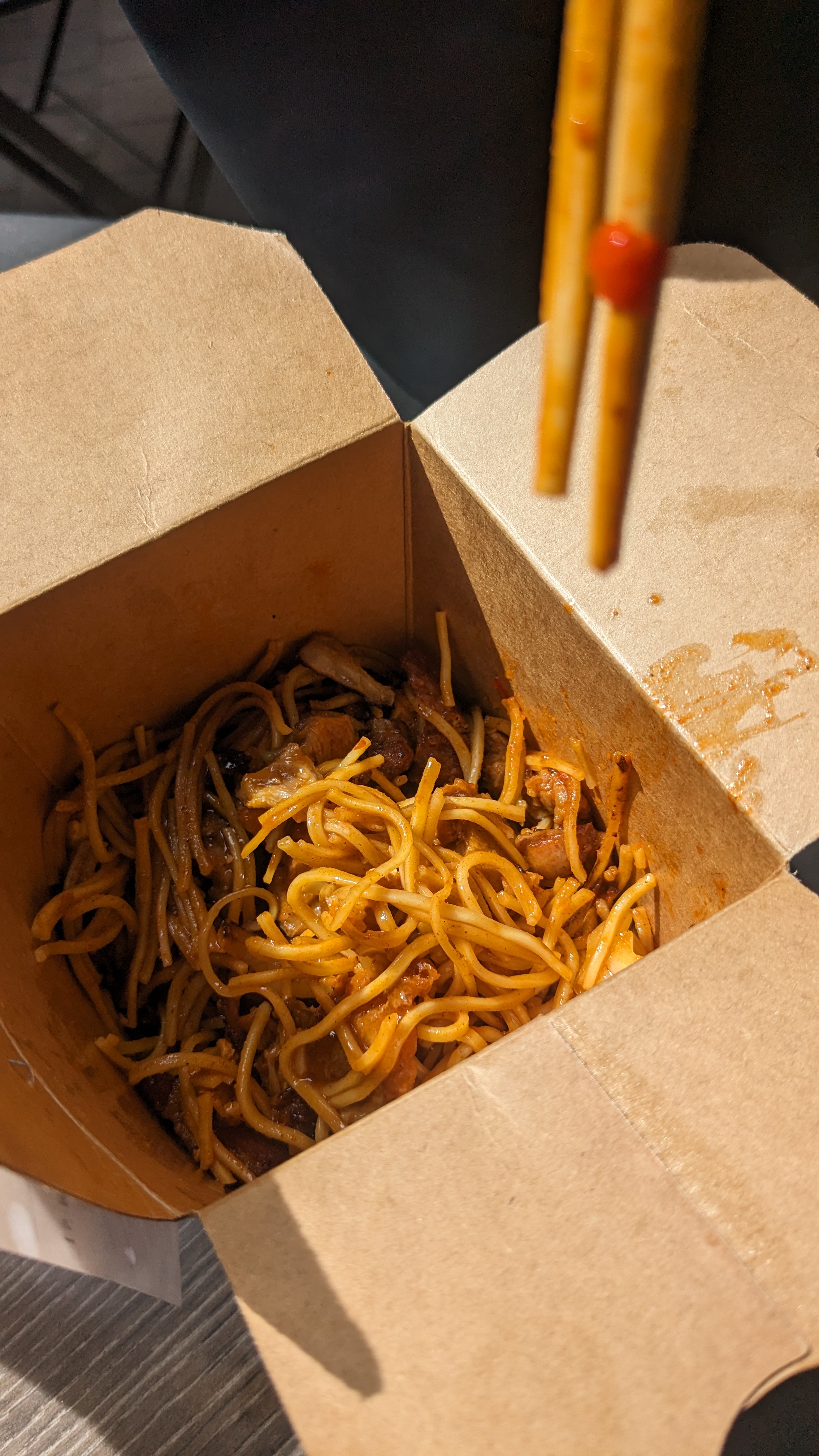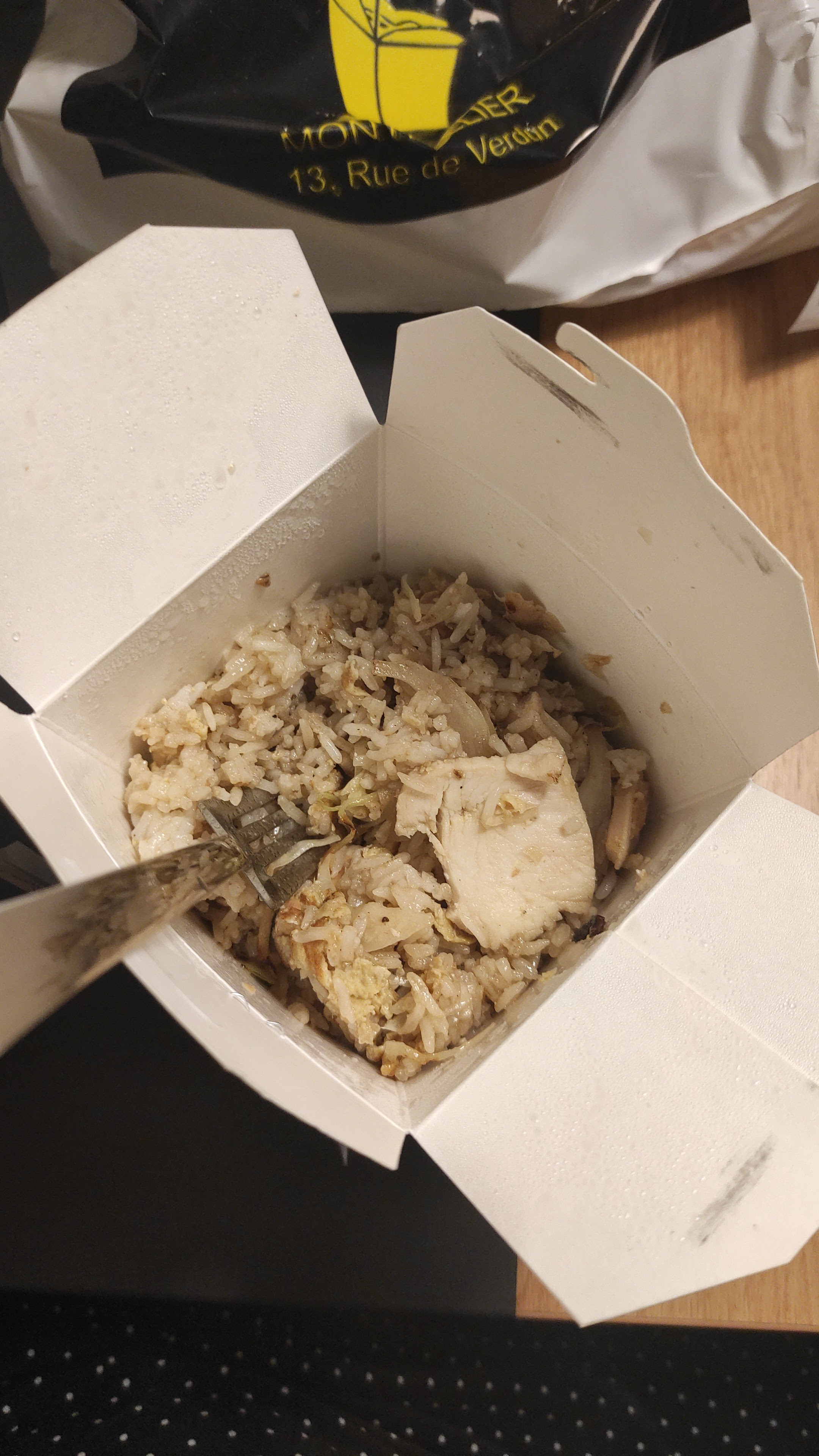 Commande Ubereat tardive (vers 23h40 pour une livraison vers 00h05). Les grosses nouilles ça allait, c'était chaud, la sauce était généreuse. Il y avait un peu de goût. Le riz par contre, infecte. Les ingrédients sont brûlés comme des fonds de casseroles (riz, oignons brûlés) avec l'odeur et le goût qui vont avec. Je déteste le gaspillage mais malheureusement c'était bon pour la poubelle. Pour le prix annoncé, cela ne valait pas le coût. Je suis déçue et je ne recommanderais pas.
