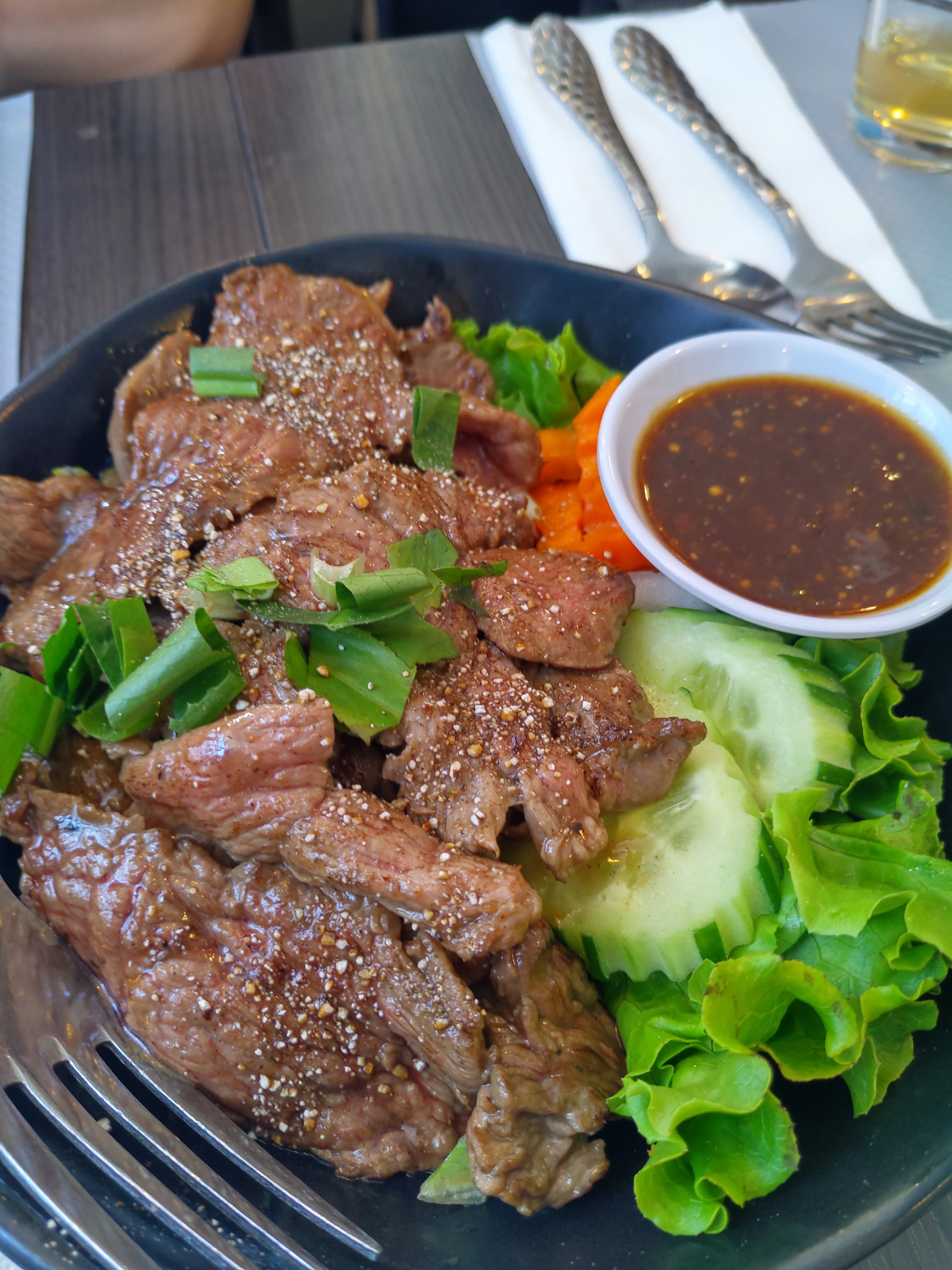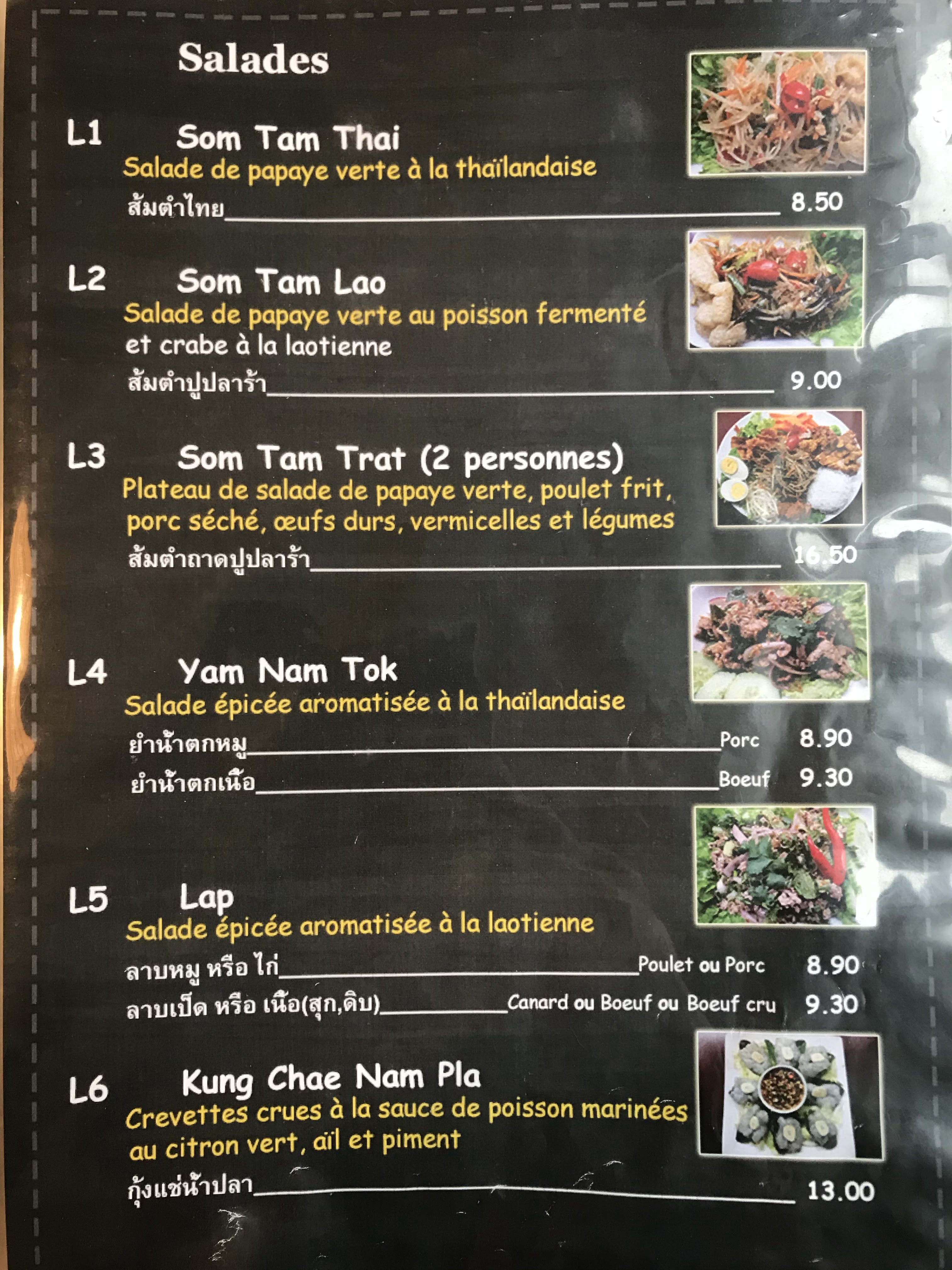 C’est un très bon restaurant. La salade Som Tam Lao est délicieuse avec le bon goût, le même que la salade que j’avais mangé au Thailand. La soupe au poisson est pour deux personnes et n’est pas présente dans le menu. Elle a une saveur de Tom Yam qui est très bon. Je recommande fortement ce restaurant.