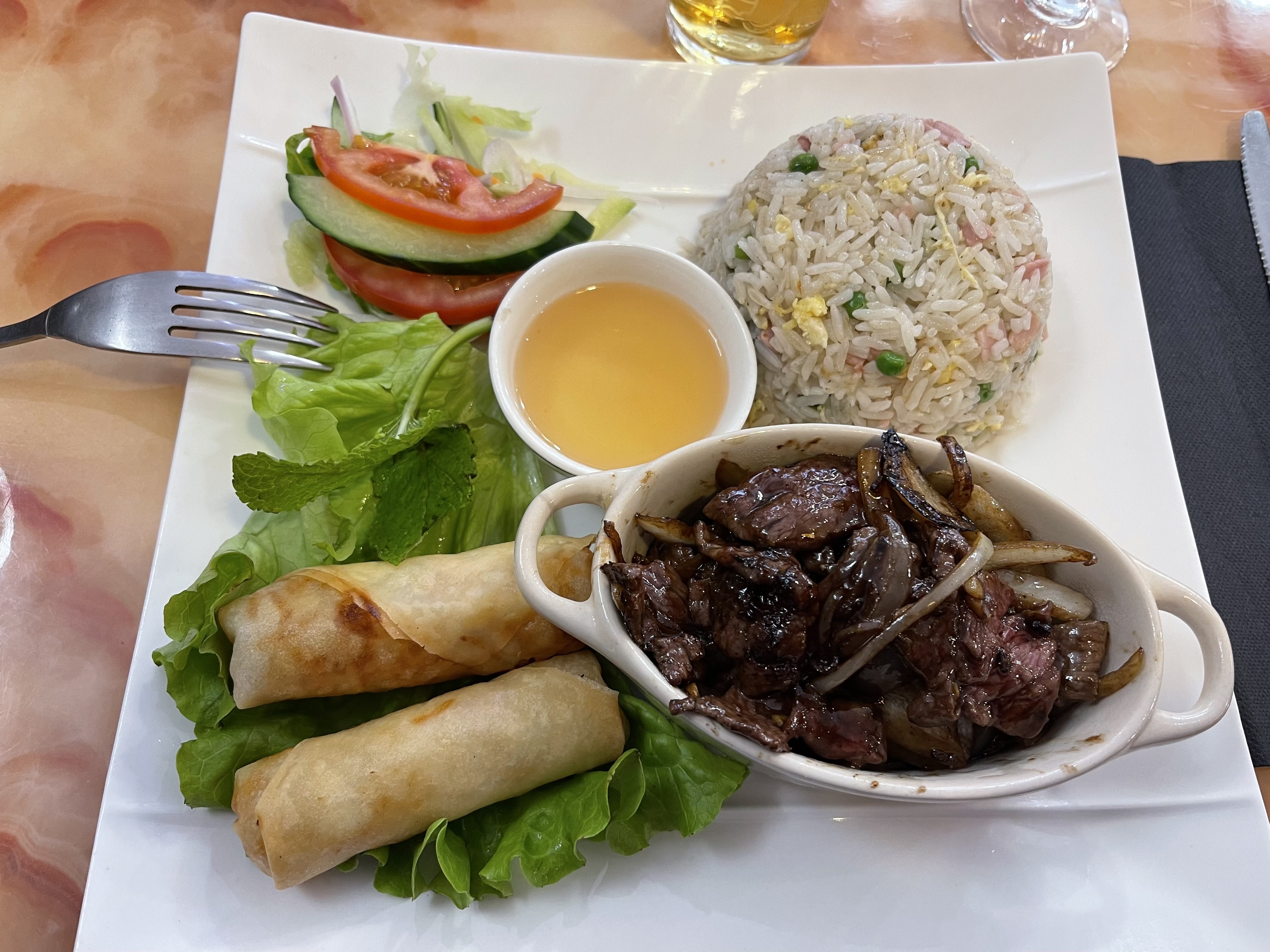Nouveau restaurant au Mans, accueil chaleureux. J'ai essayé la salade de papaye, très rafraichissante et bien assaisonnée. Le Loc lac était copieux et nous nous sommes régalé avec mon ami. Je reviendrai avec plaisir. Je vous le recommande fortement.