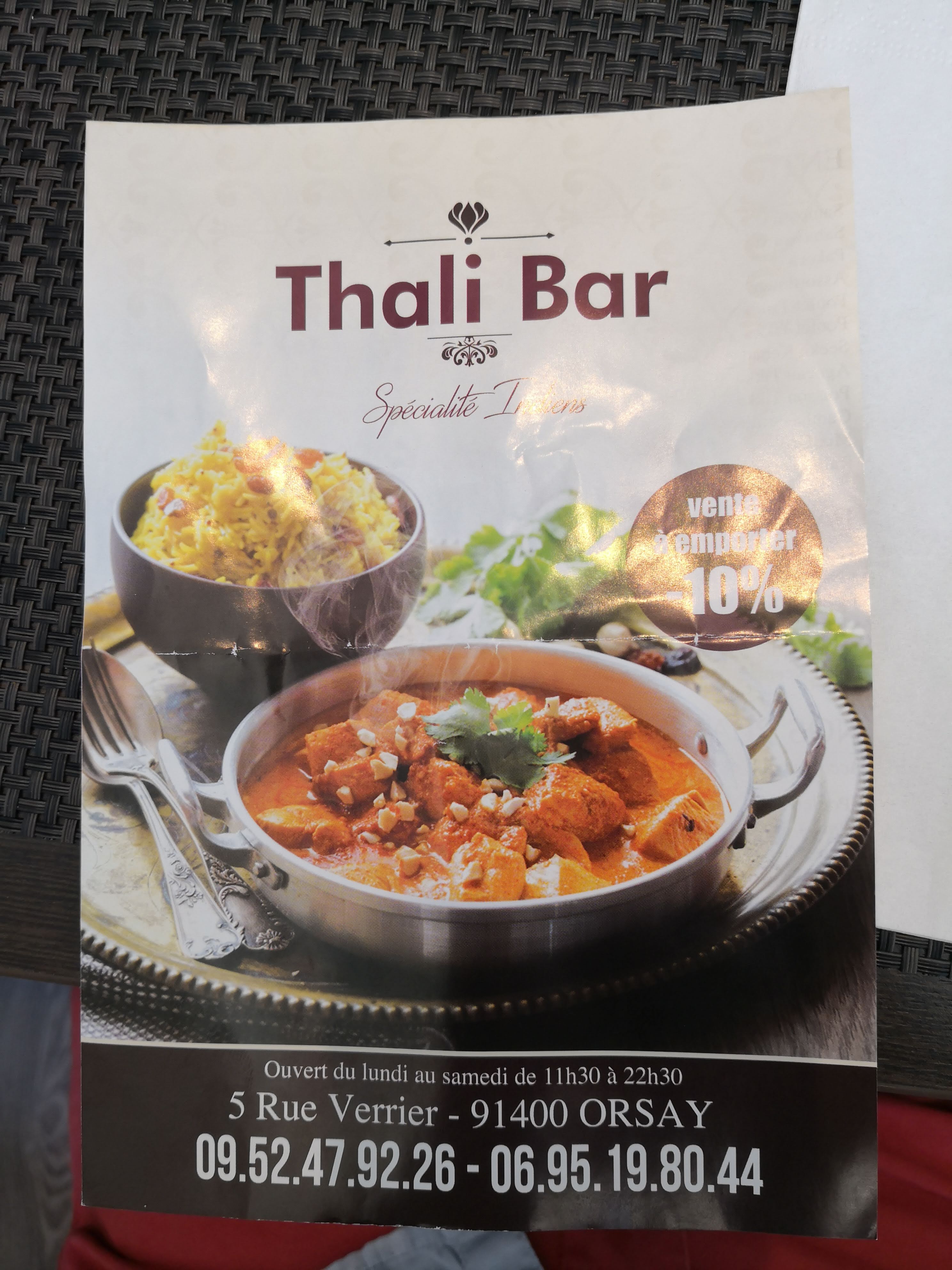 Voici toutes les informations sur le Restaurant Thali Bar qui ce trouve au 5 Rue Verrier, 91400 Orsay (91). Sur cette fiche vous trouverez les photos, l'adresse, les horaires d'ouverture, le numero de téléphone et les avis clients.Vous pouvez églement rédiger un avis si vous le souhaitez en bas de page.