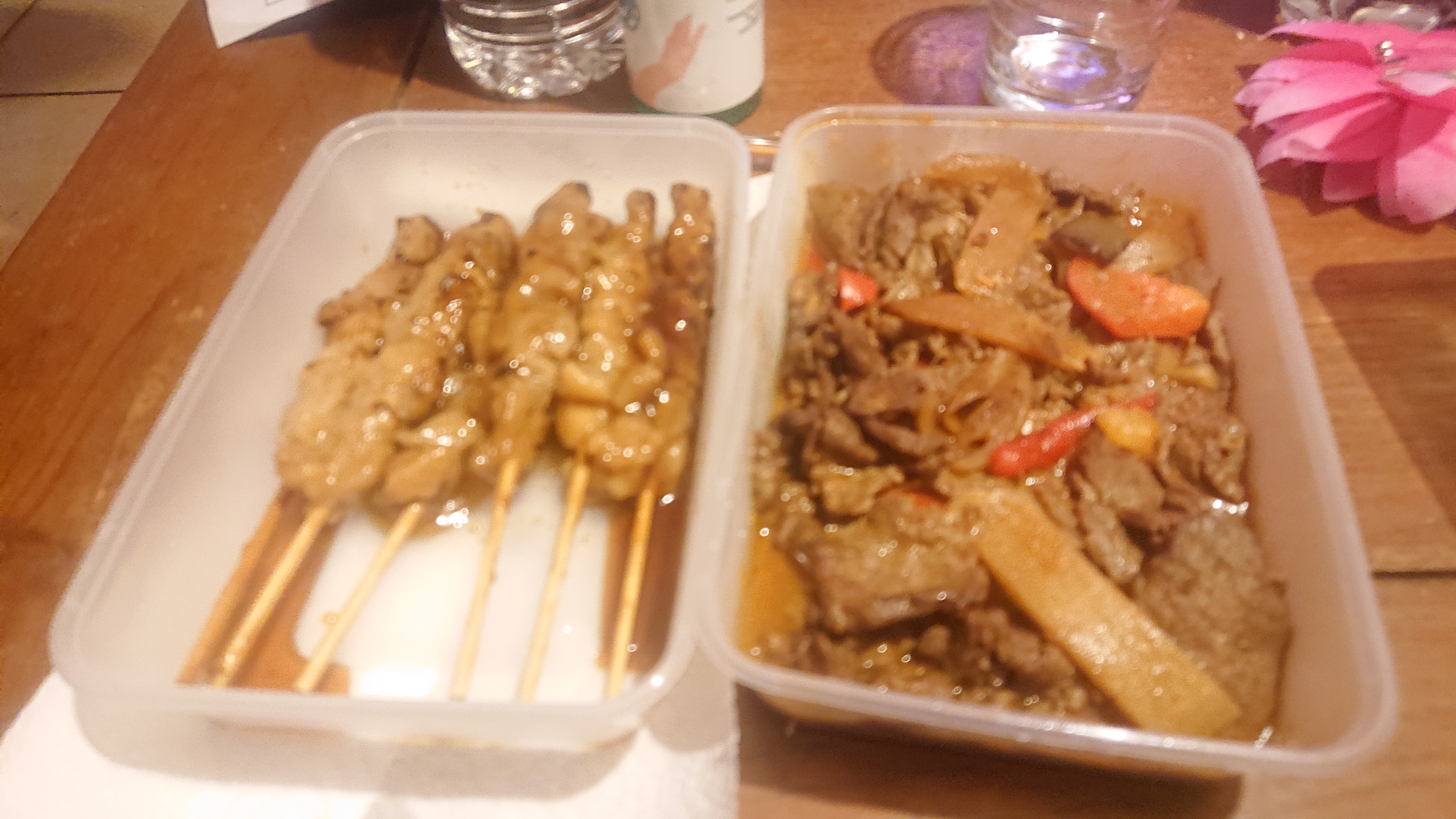 Je suis en train de déguster du bœuf sate, mon fils des brochettes de poulet et des nouilles sautées.. On se régale et accueil super gentil ! À très vite