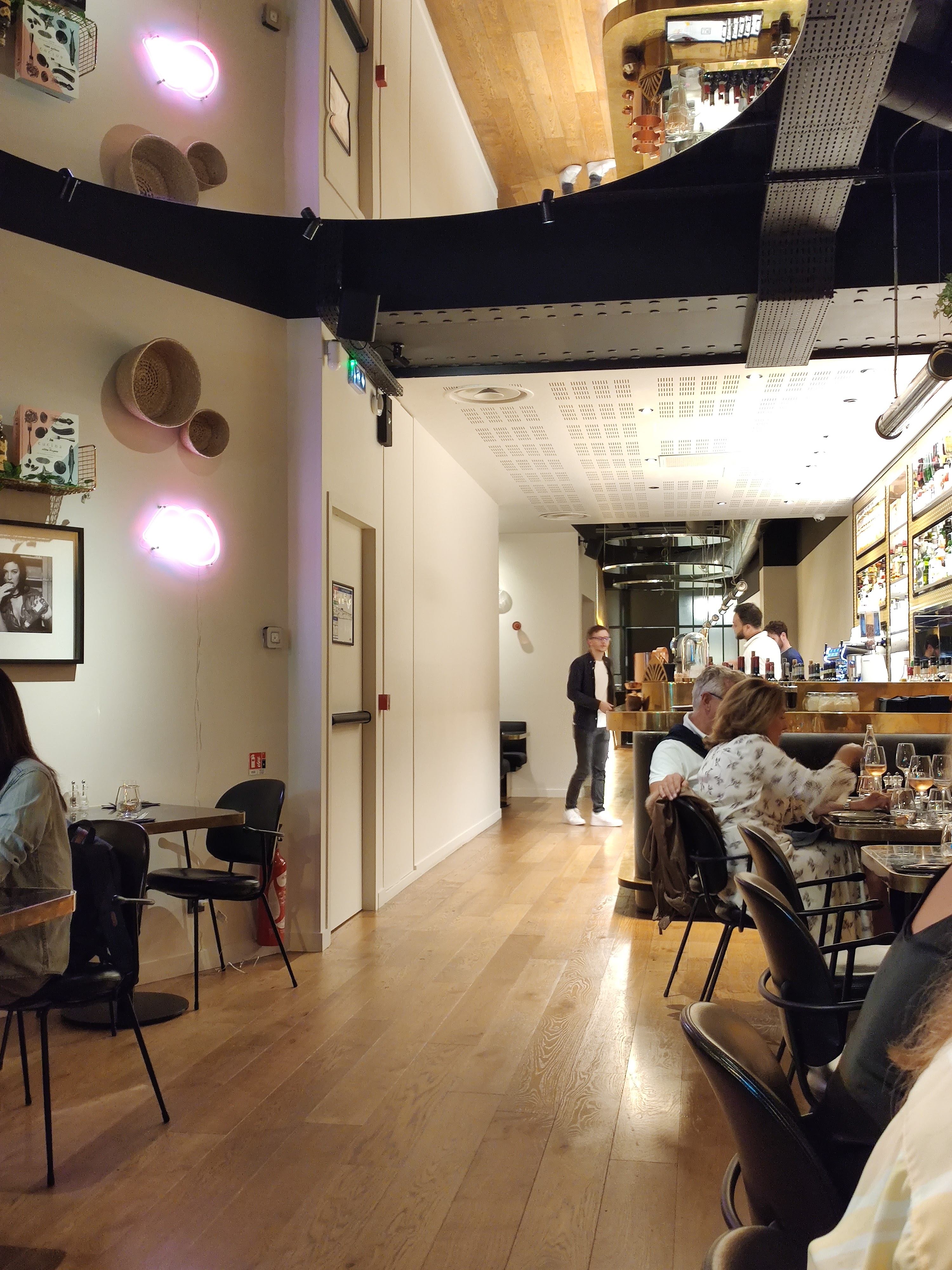 Déco très réussie, ambiance feutrée, musique sympa (un brin forte), plats délicieux (les arancini à la truffe sont à tomber), bonne recommandation au niveau des vins. Seul bémol, les prix. Il y a de nombreux autres restaurants italiens dans le même style à Paris qui sont un peu moins chers et aussi bons.