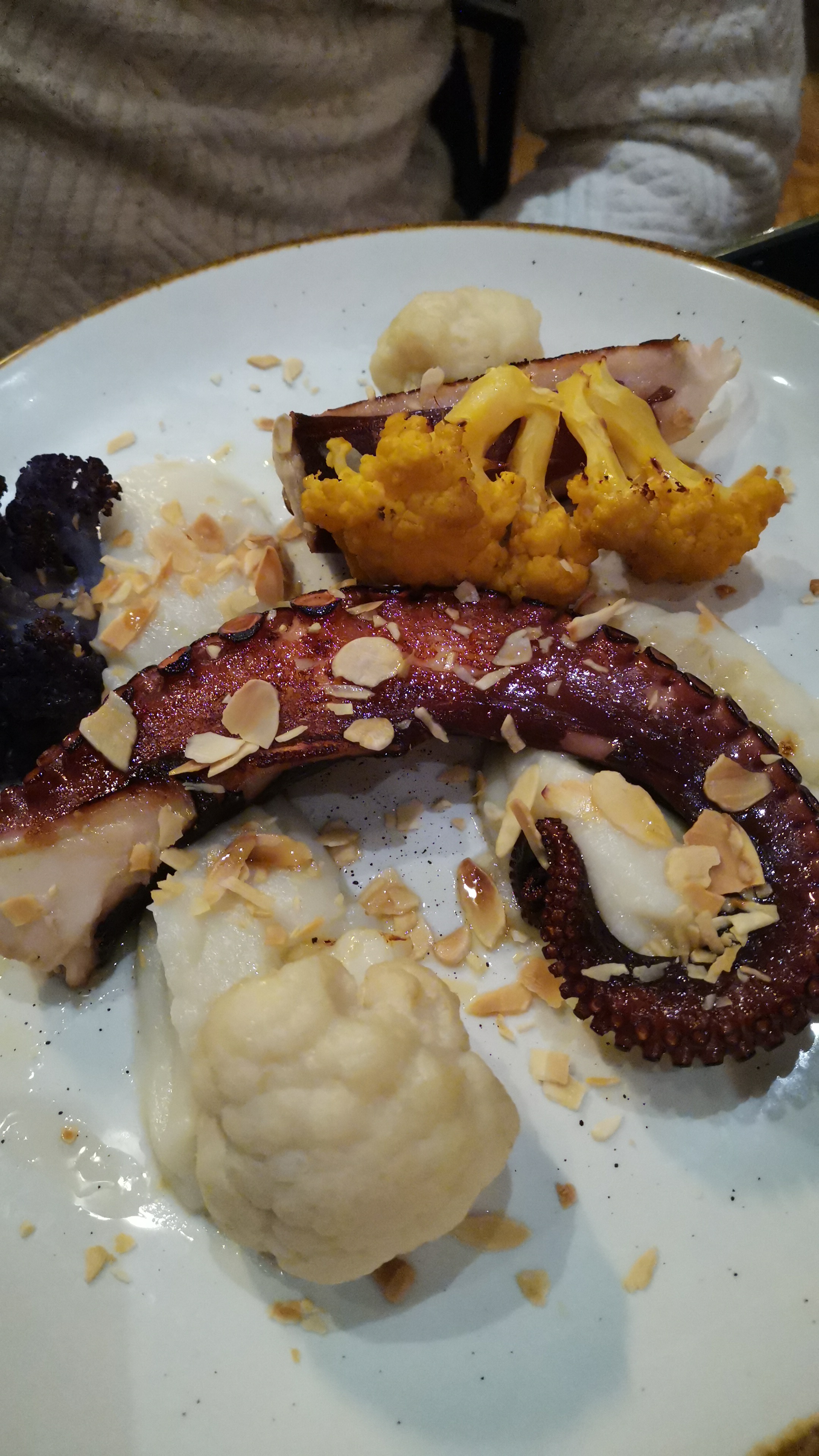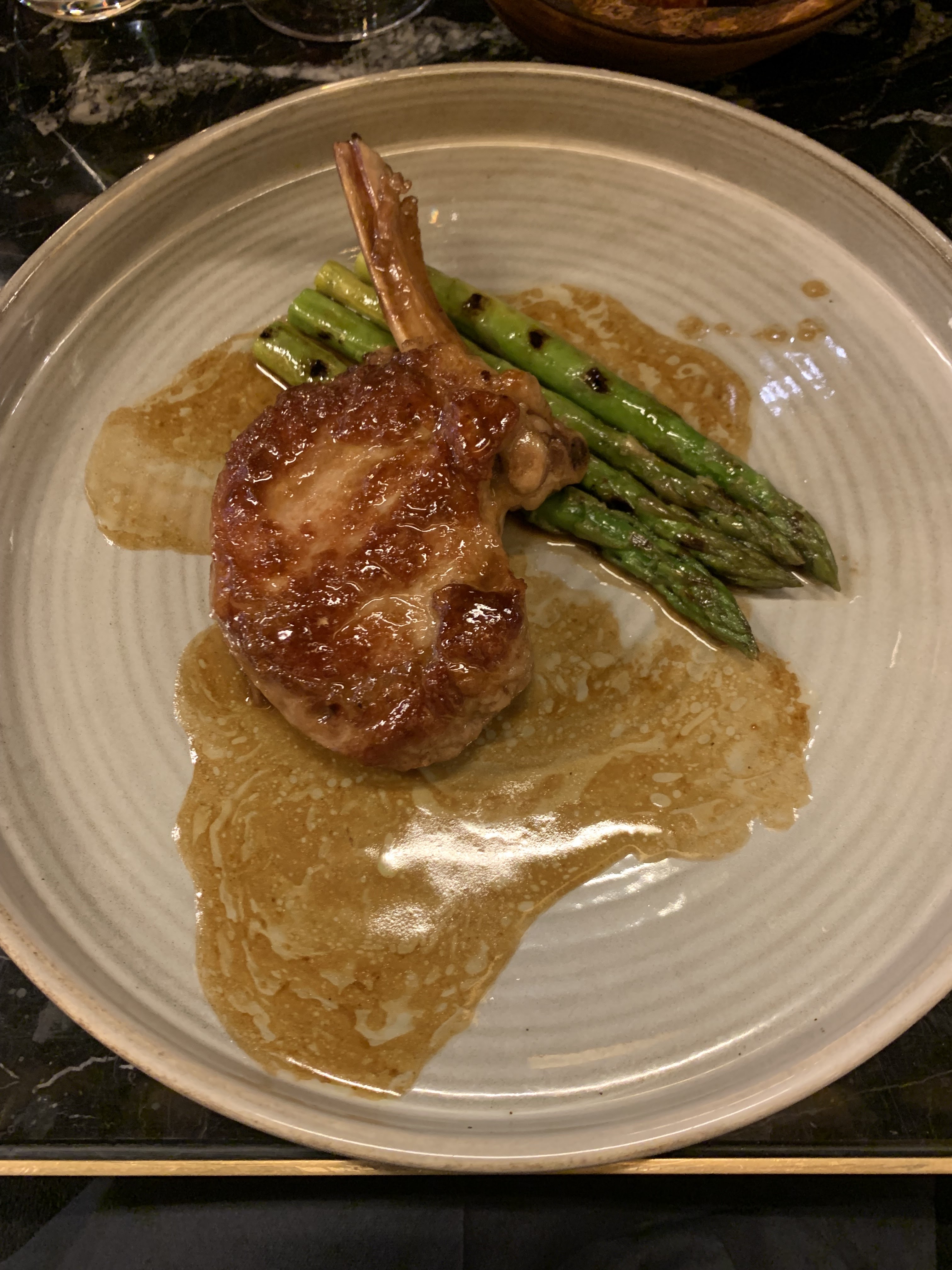 Ambiance chic avec sièges confortables. Malheureusement, la musique jouée n’était pas idéale pour le décor (pensez à un club de danse médiocre). Même si les plats salés étaient bons, ils manquaient un peu de piquant. J'ai commandé un verre de vin blanc servi à la température idéale. Petit constat mais non négligeable, mon verre n’était pas versé à la quantité (je suppose que je n’ai juste pas eu de chance car un petit coup d’œil autour de moi a prouvé que j’étais le seul). Cependant, ma plus grande déception a été celle du plat principal. Après beaucoup d'hésitation, j'ai opté pour le veau en raison de l'association intéressante de la crème de céleri et de la sauce à la sauge. Malheureusement, je me suis retrouvé avec seulement la viande identique au menu. J'en ai parlé au serveur et il s'est excusé et a proposé de changer le plat mais je ne voulais pas qu'il soit gaspillé. Le plat a fini par être assez basique, à mon avis, donc cela a quelque peu gâché l'expérience pour moi. Par contre les desserts étaient superbes. Avoir le café gourmand m'a donné l'avantage de pouvoir tester chaque dessert.