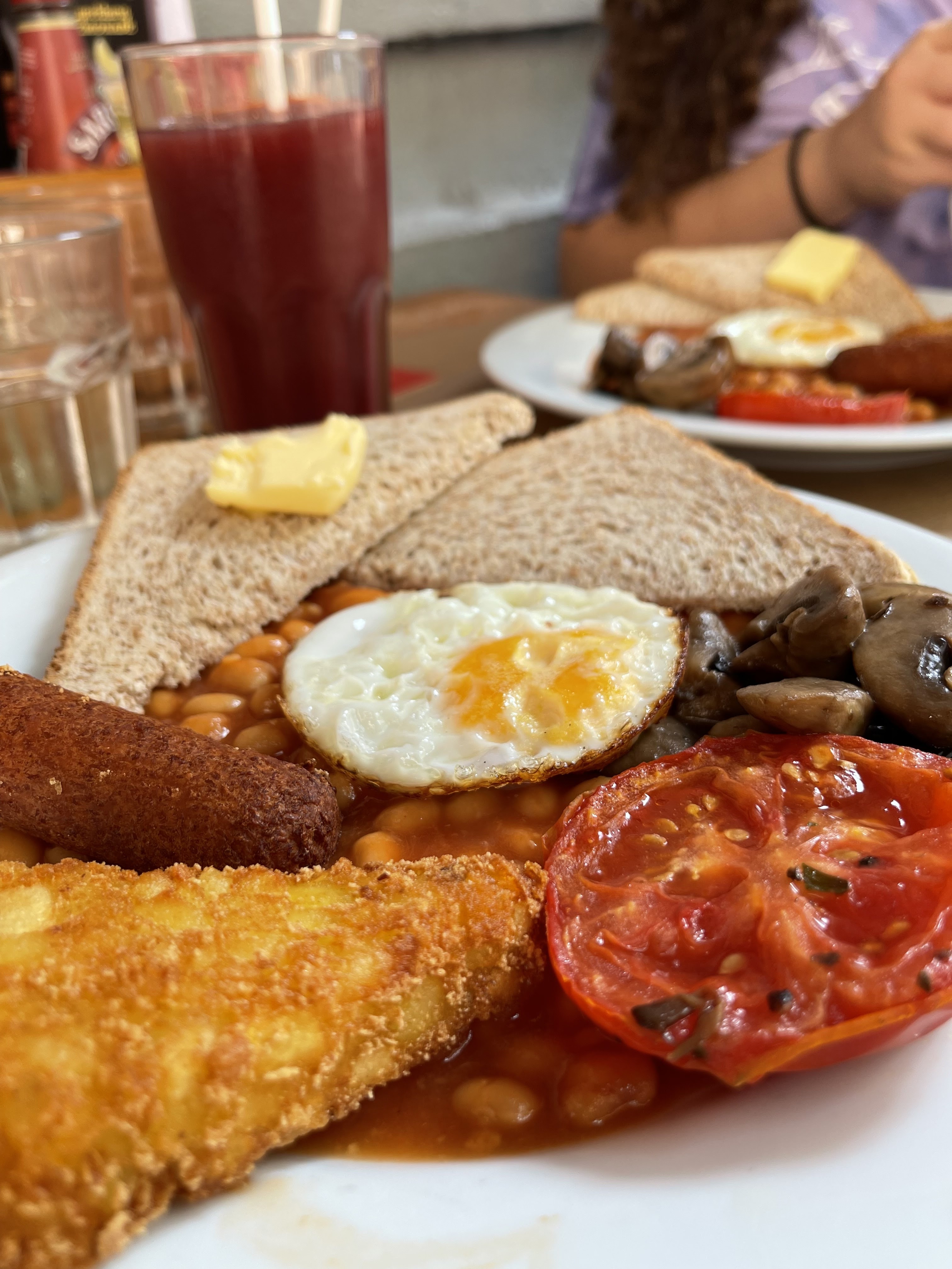 Supris par le dernier avis donné sur le breakfast …..? ca reste typique , black pudding, bacon, egg, mushrooms , tomato , toast, hashbrowns and baked beans, service toujours bien , au soleil ce midi dehors, pour une anglaise en france que demander de mieux !!