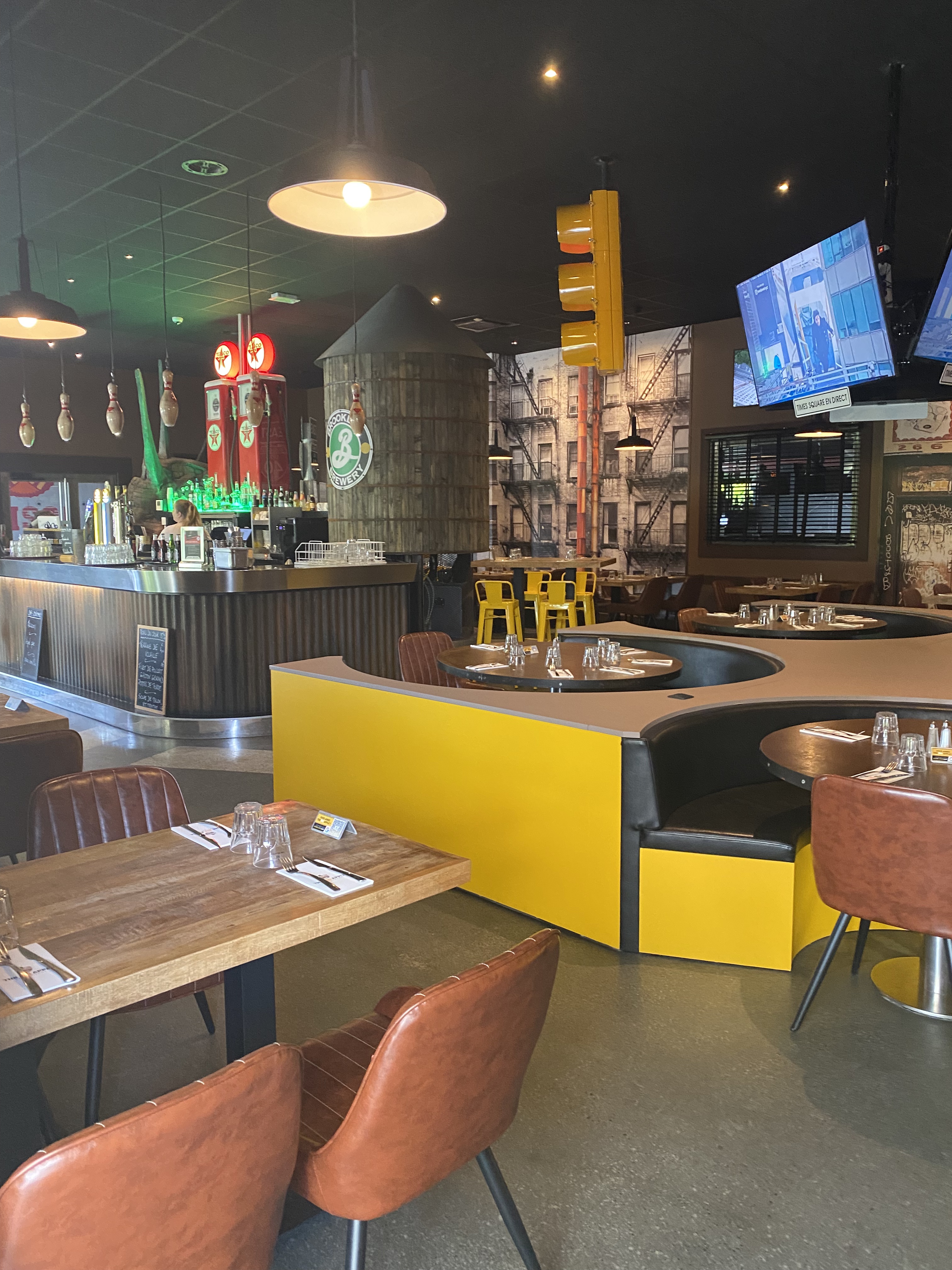 Décoration sur la ville de New York vraiment originale, serveurs agréables, par contre vraiment déçue du burger.. nous avons pas eu le choix sur la cuisson du steak qui était beaucoup trop cuit et le pain était vraiment sec.. je ne reviendrais pas