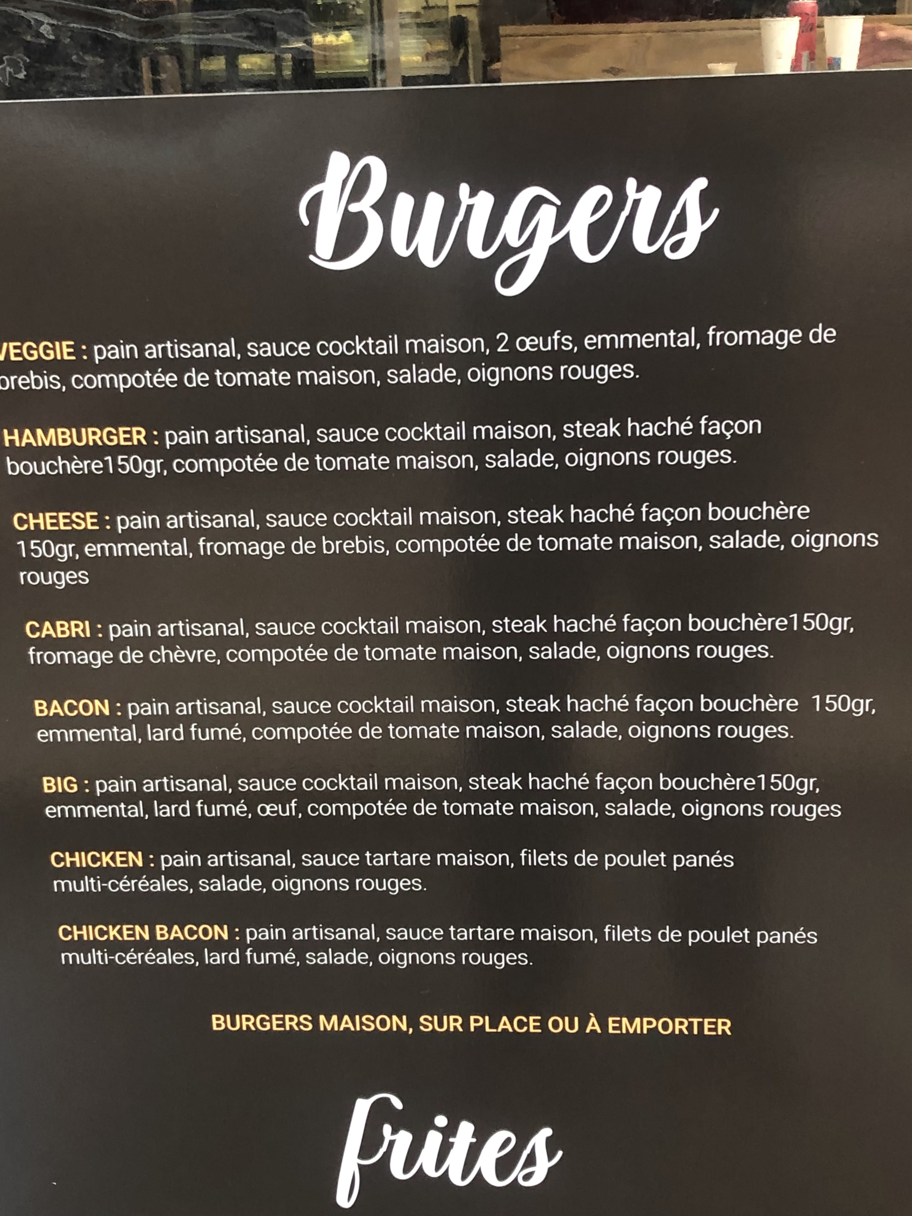 Accueil très agréable. Rien à dire. Toutefois ne prend pas les tickets restaurant, ne propose pas de menu. Les frites sont super bonnes, mais une main un peu lourde sur le sel, même remarque pour la mayonnaise dans les burgers. Tout cela se corrige 😝