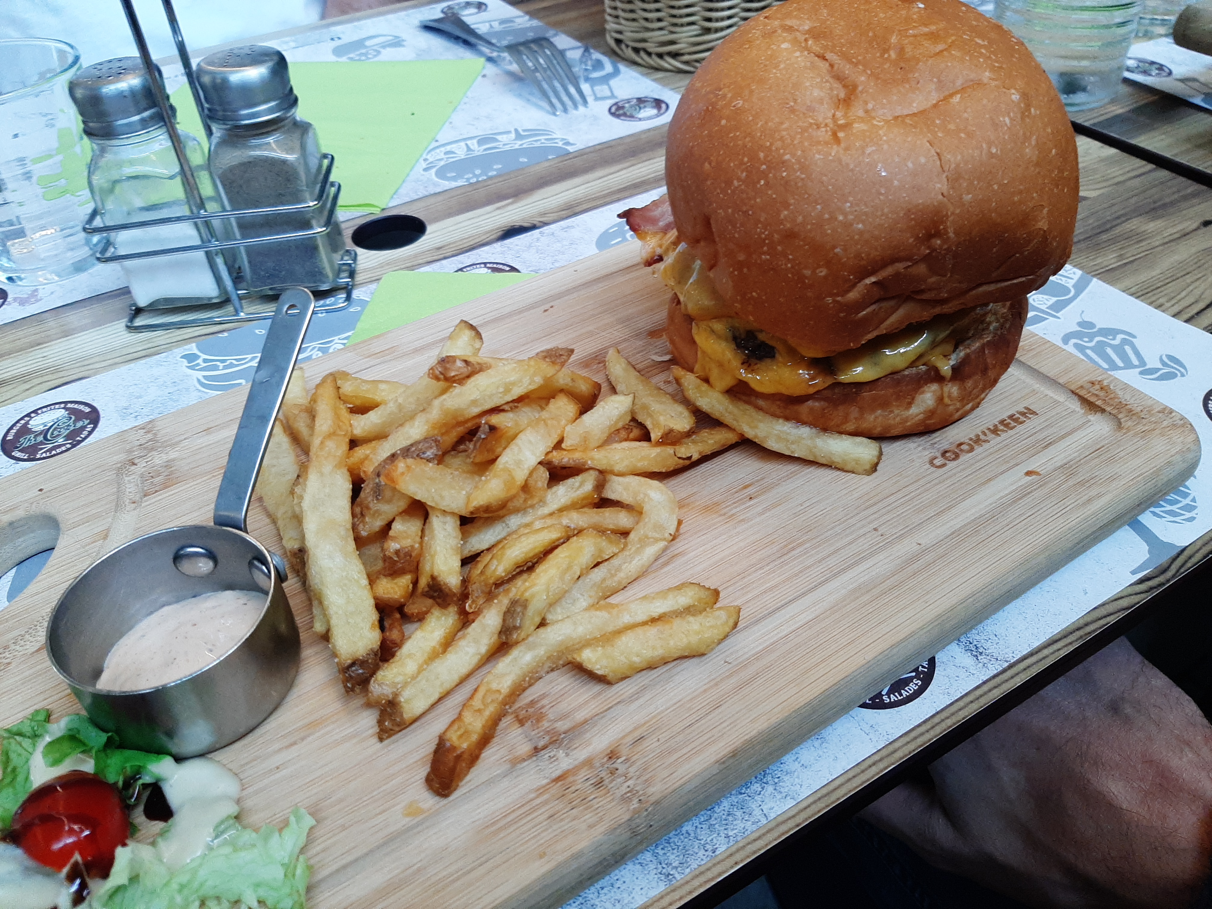 Franchement super bons burgers, des frites au top comme les petites sauces du cooker avec glace liégeoise qui étais bien bonne aussi 😋 Franchement personnel sympa je conseille bien !