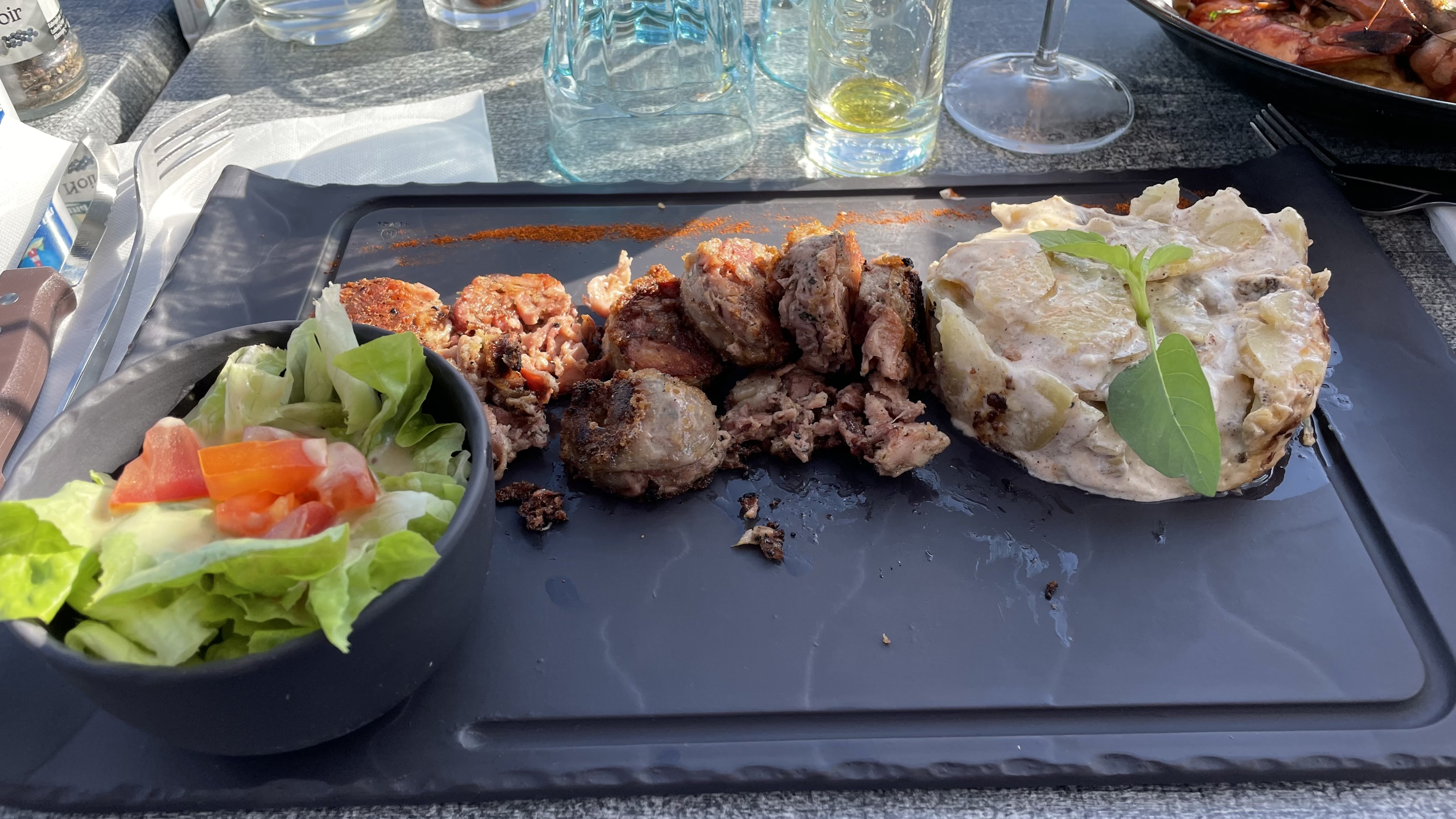 Plats de qualité, Daurade excellente, café gourmand copieux et qualitatif et mojitos aussi ! Et service au top, accueillant, gentil serviable ! Rien à redire à part merci ! Un bon repas de fin de vacances !