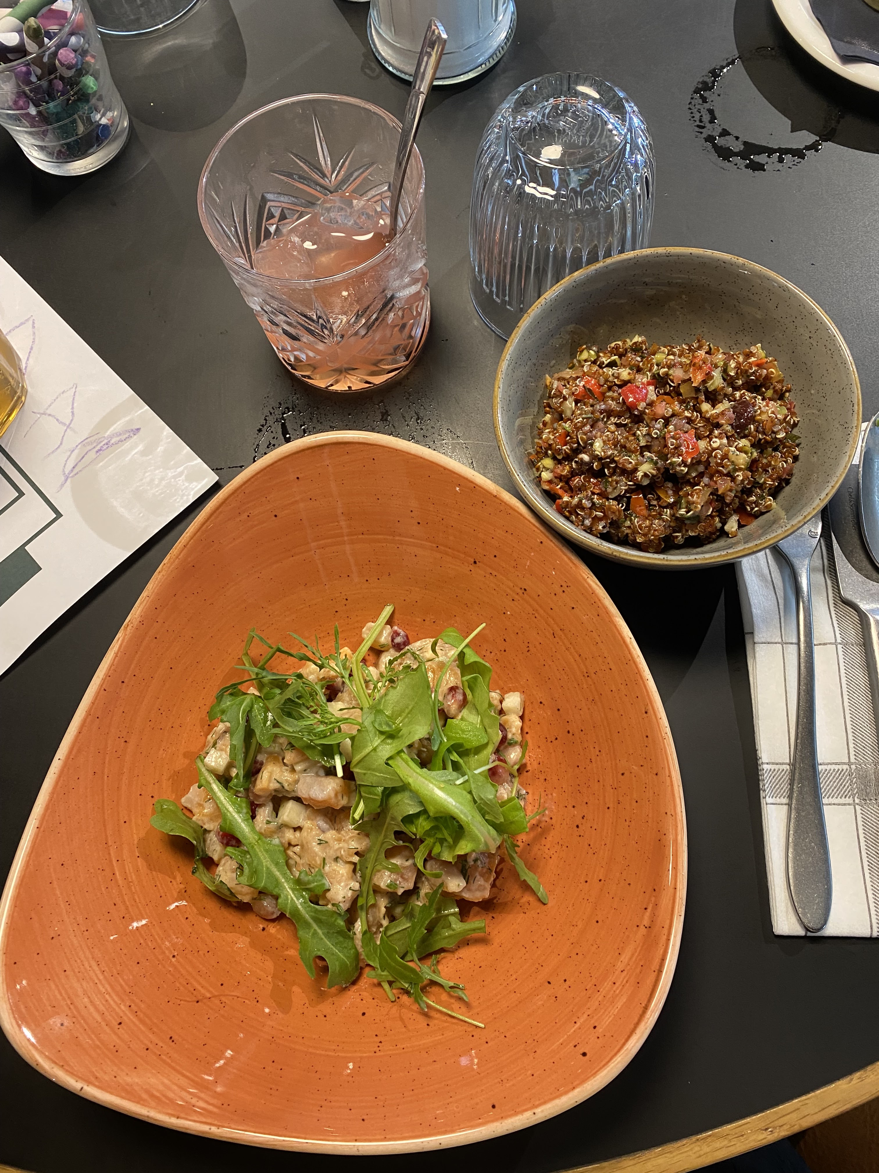 cadre très joli, joli mobilier, jolies vaisselles carte épurée, prix un peu cher je trouve... (salade assez simple au final et idem pour les desserts)
