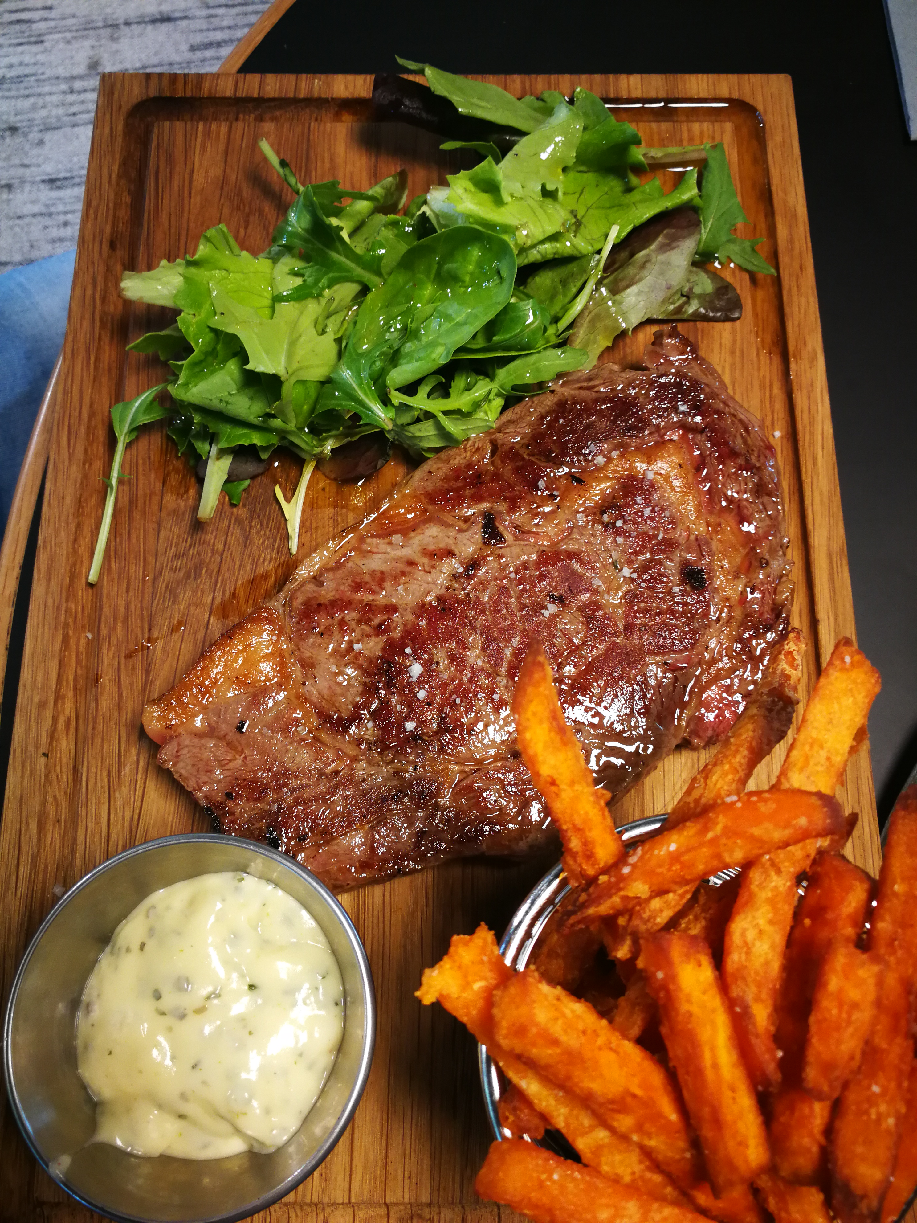 Nous avons manger à 4 dans ce restaurant. Le serveur était accueillant et sympathique avec une touche d’humour. Le style du restaurant est très agréable. Mais il manquait un peu d’ambiance, pas de musique ( en tout cas pas depuis la où nous étions assis). Nous avons cependant été déçu par la nourriture. Nous avions pris 2 entrecôtes 300gr (cuisson respectée) mais malheureusement une bonne moitié de la viande était trop dure et difficile à mâcher. Nous avions aussi pris 2 veloutés avec œufs mollets qui n’était pas mollet malheureusement. Nous espérons pouvoir revenir un jour afin de nous réconcilier avec ce restaurant.