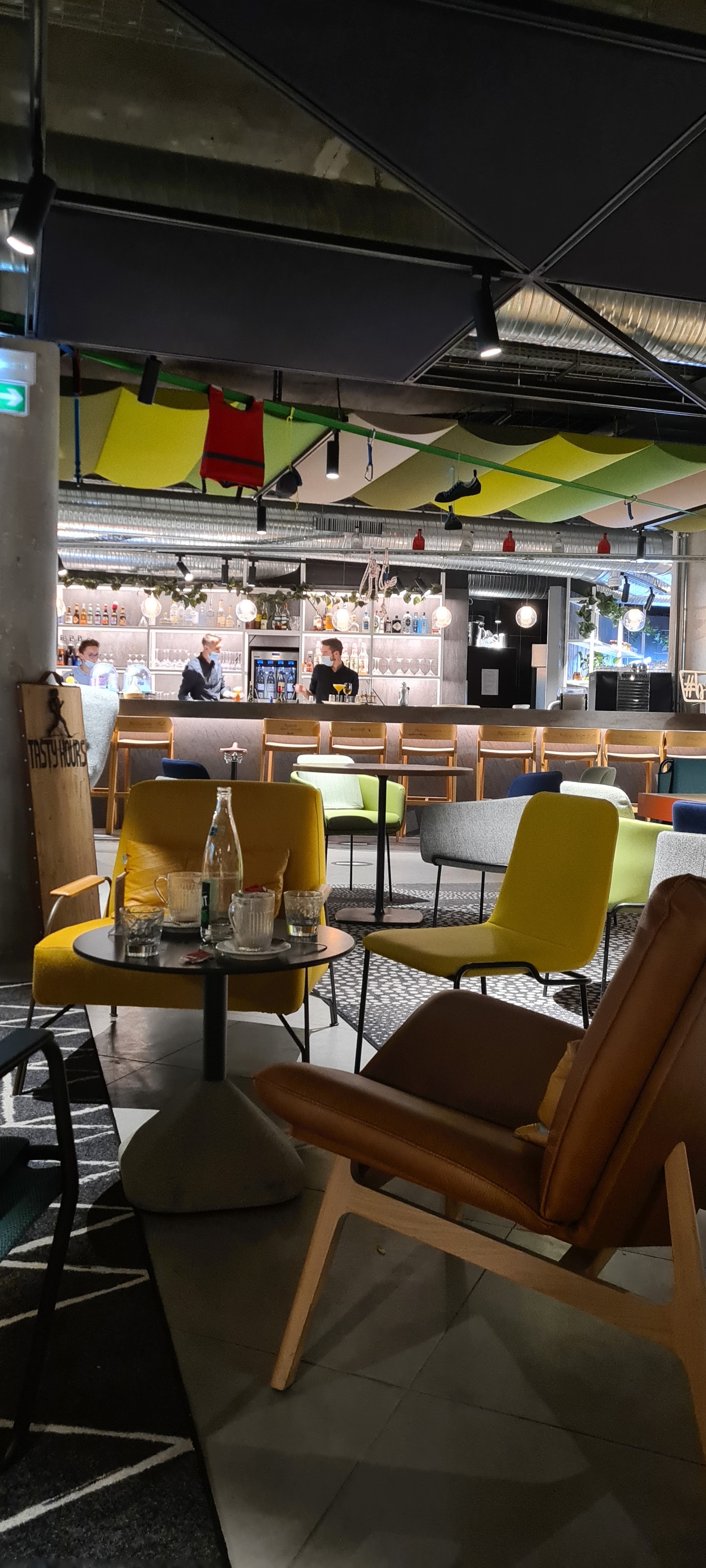 Déçu du lieu. L'endroit est agréable en sois. Nous étions côté restaurant, soir de match côté bar. Les serveurs étaient de tous les côtés mais jamais vraiment présents non plus. Au niveau de la nourriture c'était fade et certains des plats étaient à peine cuit. Sur quatres café gourmand, deux n'avais pas de sucre, et juste quatres petites collation pour 9€ et un café clair. Peut-être que le personnel était débordés côté bar, mais négligés pas non plus le reste de vos services. Pourquoi pas à essayer un brunch un jour plus calme. Mais je n'est pas grande, conviction là dessus.