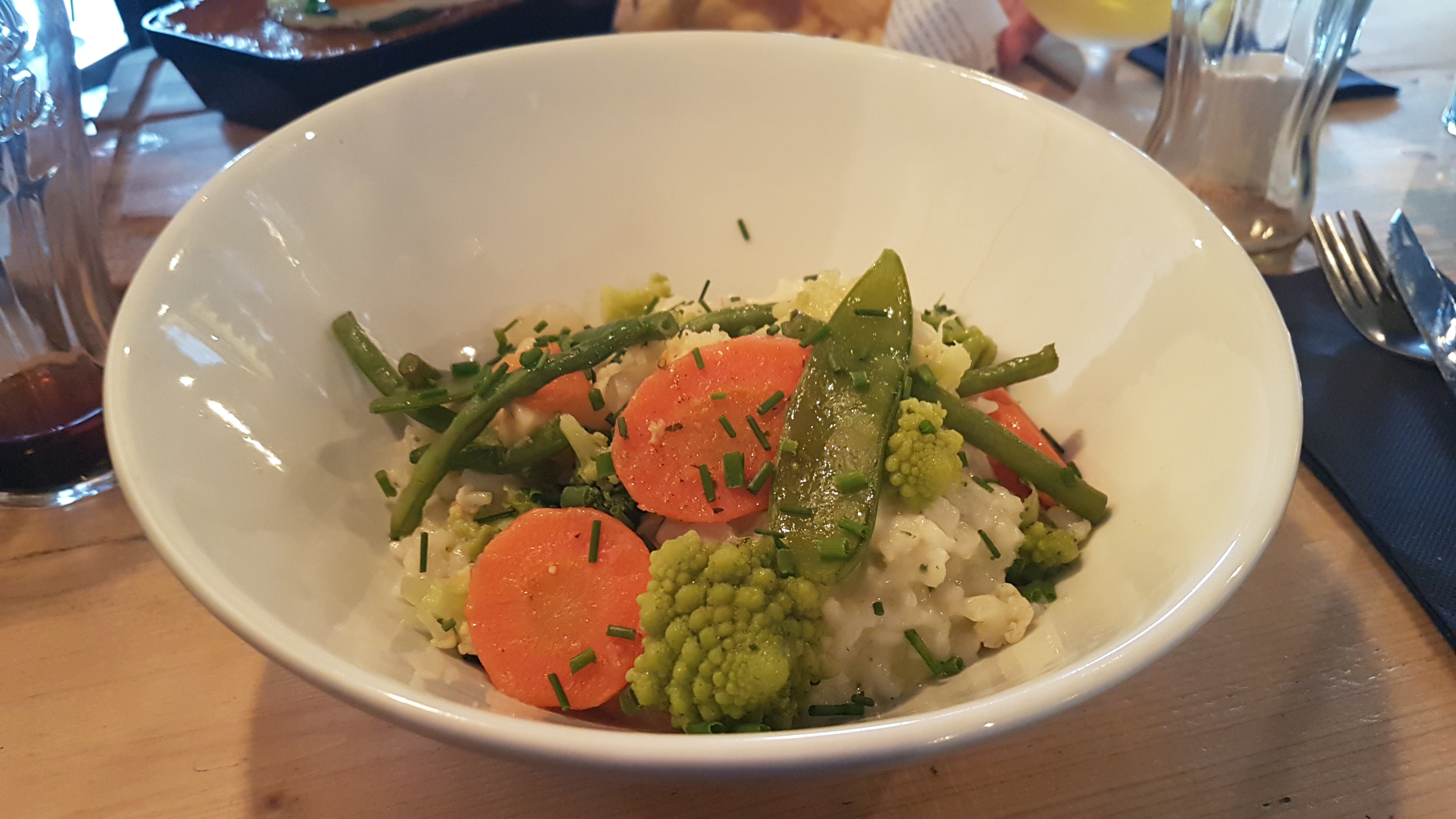 Endroit moyen et assez cher pour un repas le midi. Pas beaucoup d'alternative si on ne mange pas de viandes. Sur le même midi, trois plats sont retournés car il y avait un vers dans la salade et pas un petit.